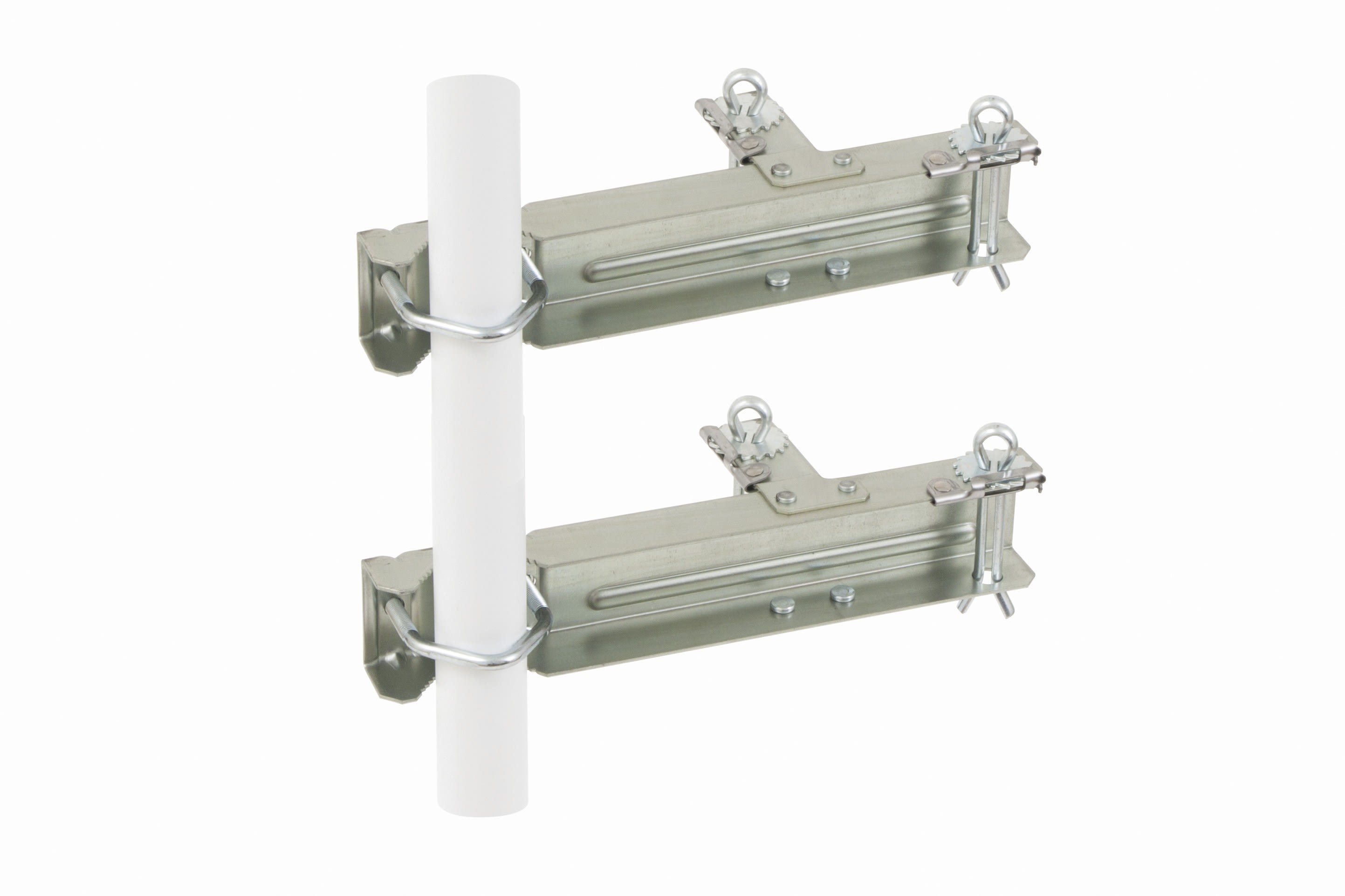 Fixation cheminée double pour mât de Ø 30 à 50 mm, les 2 éléments - finition galvanisée.