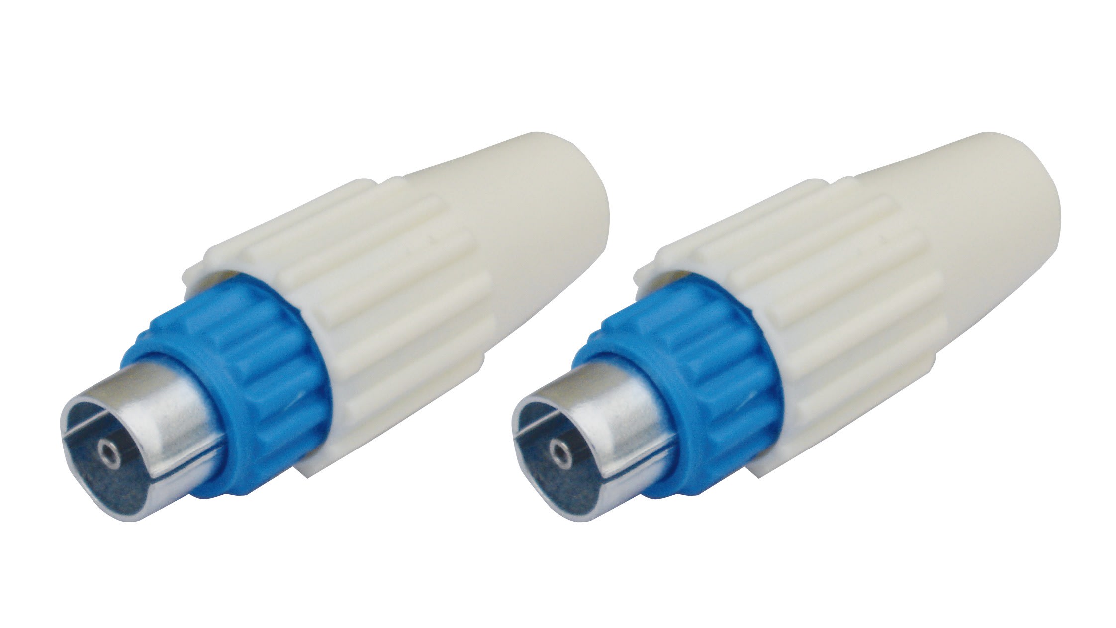 Kit 2 prises TV 9.52mm mâle - pour câbles 17 et 19 VATC - Connecteurs plaqués nickel.
