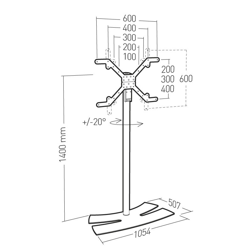 • Socle en acier ; peinture époxy noire ou blanche.• Mât diamètre 60 mm ; peinture époxy aspect chrome.• Gestion des câbles incluse dans le mât.• Ecran orientable +/- 20°.• Réglable en hauteur +/- 50 mm.