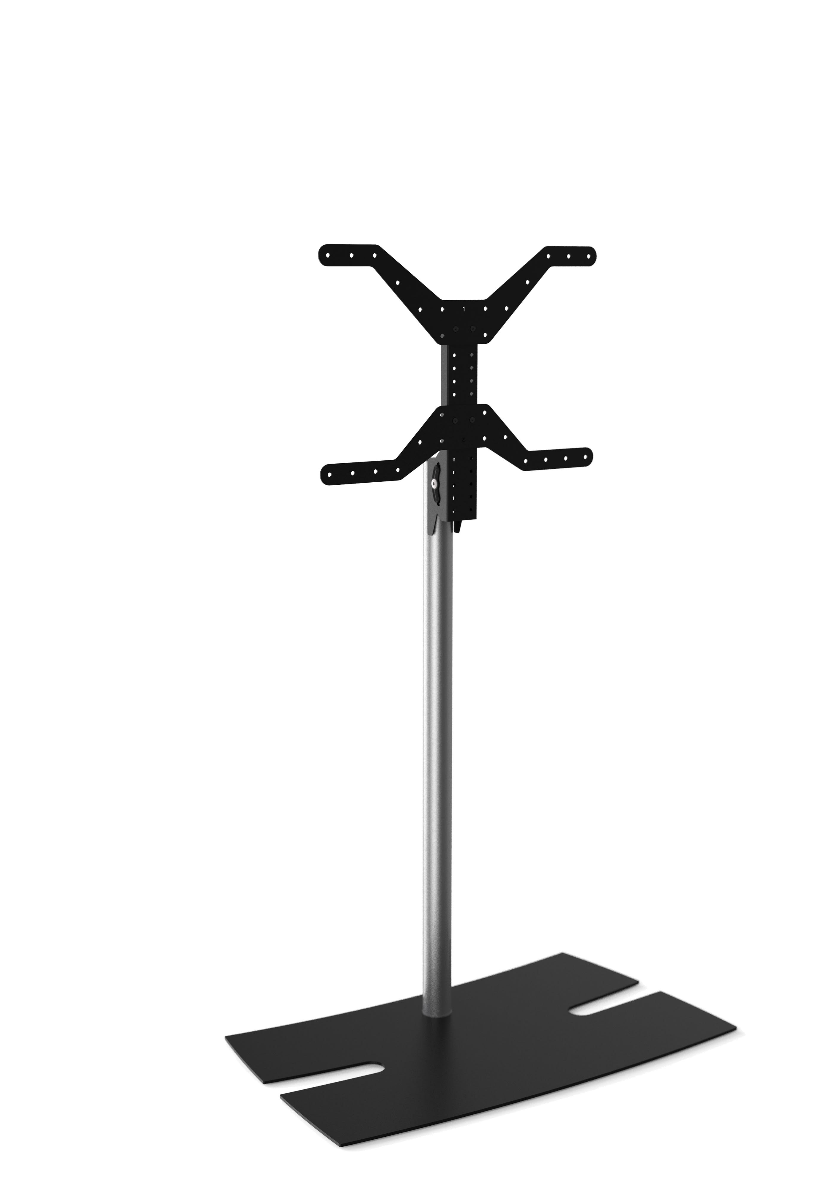 • Socle en acier ; peinture époxy noire ou blanche.• Mât diamètre 60 mm ; peinture époxy aspect chrome.• Gestion des câbles incluse dans le mât.• Ecran orientable +/- 20° et inclinable +/- 10°.• Ecran réglable en hauteur sur 475 mm.• Tête inclinable, orientable et réversible.• Nouveau design du socle pour être placé au plus près du mur.• Possibilité d'installer un écran en portrait (option).