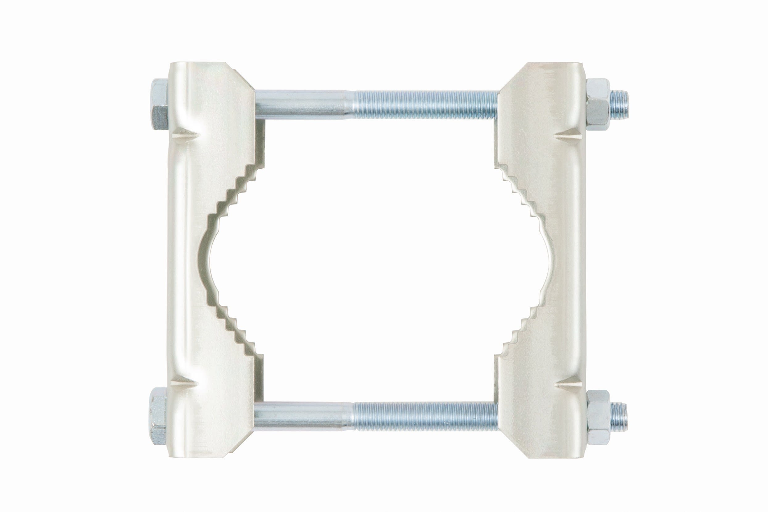 Mâchoires + vis et écrous, pour mât Ø 40 à 90 mm - finition Zinc bleu.