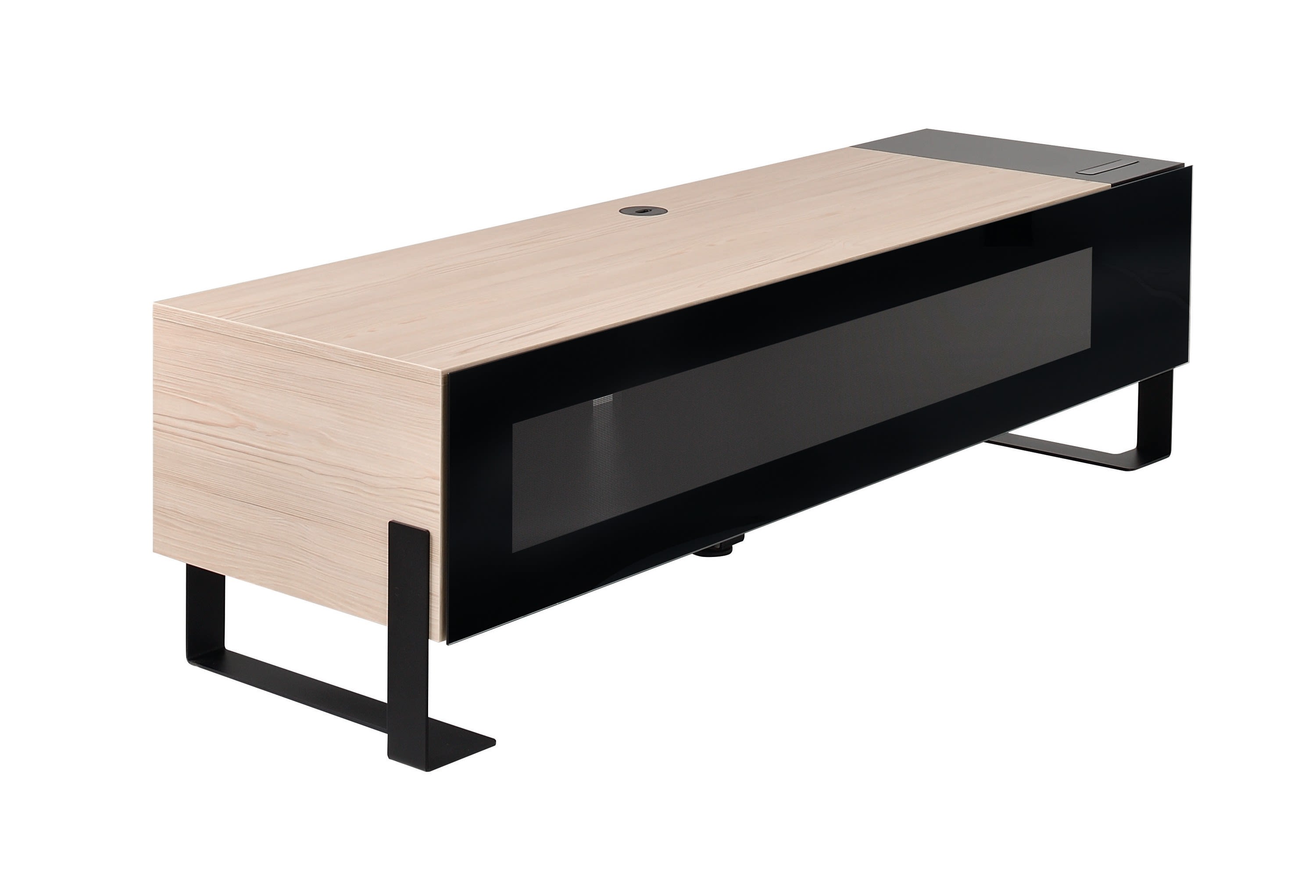 NAGA 1600 TRAPPE - meuble TV fermé 1600 Nordic, structure acier et bois, porte abattante en verre sérigraphié - poids maximum supporté : 50kg.