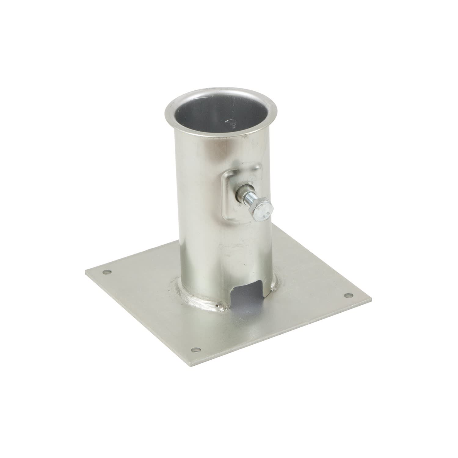 Plaque de base acier, pour grenier et terrasse, pour mât jusqu'à Ø 50 mm - finition Zinc bleu.