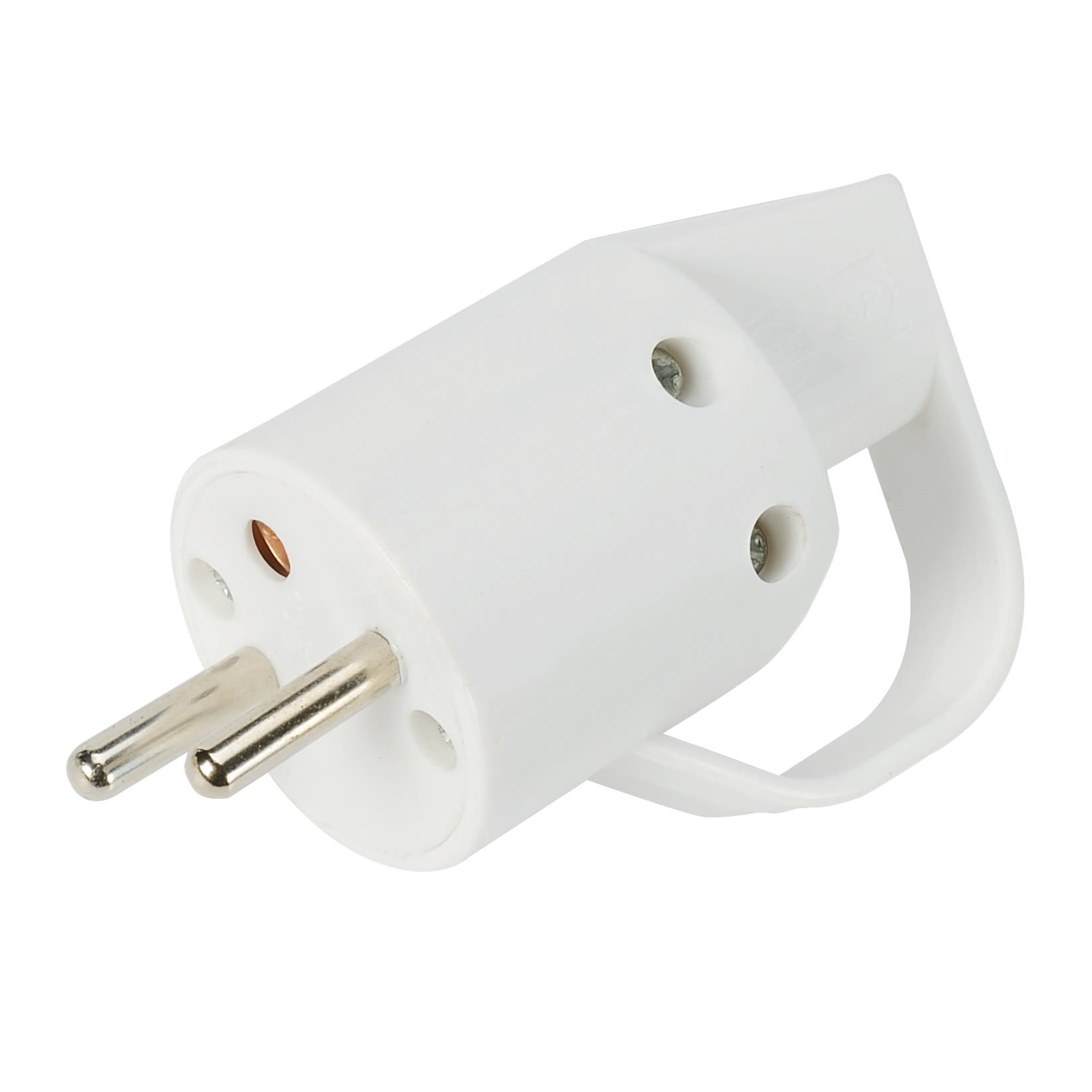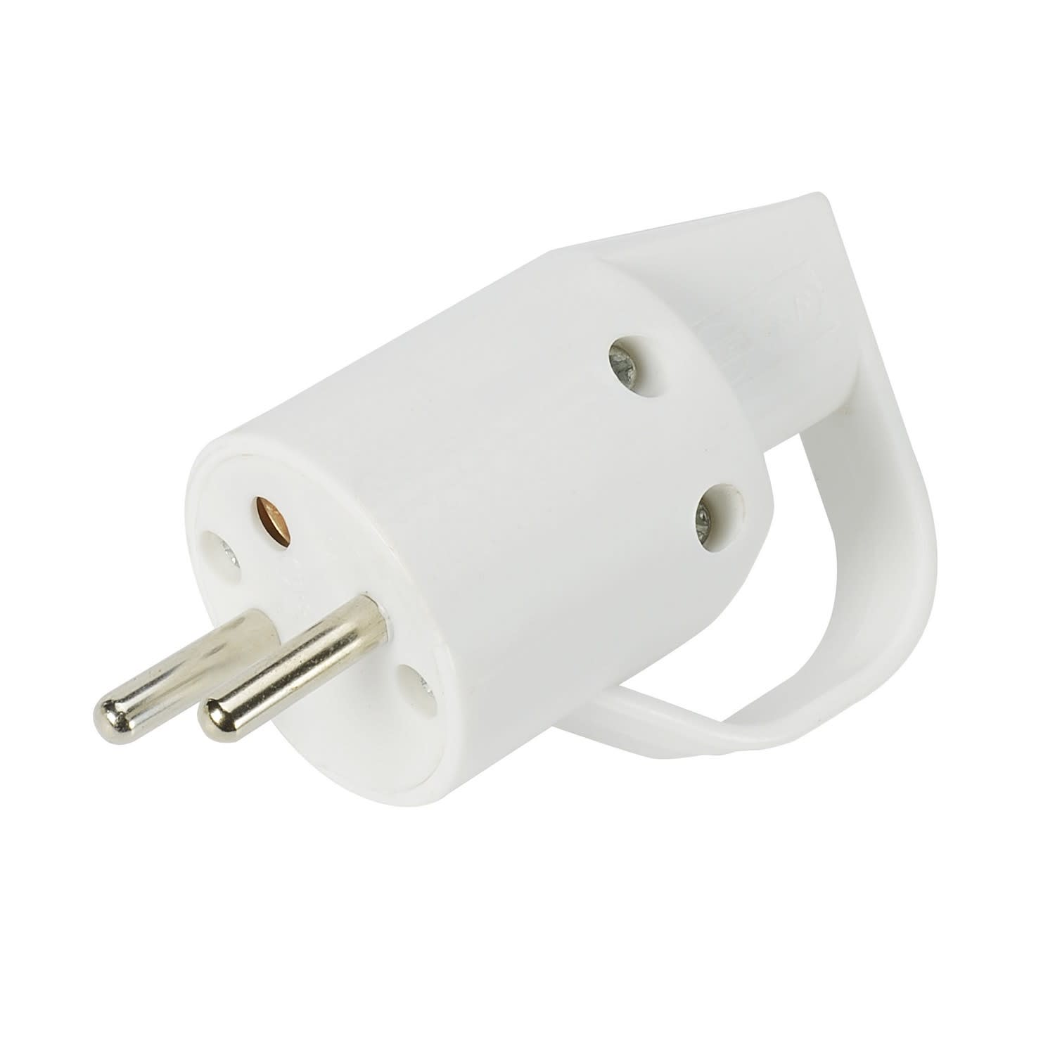 Prise électrique 230V (2 Pôles + Terre) mâle - 16A - Prise à anneau - Certification NF - blanche - à monter