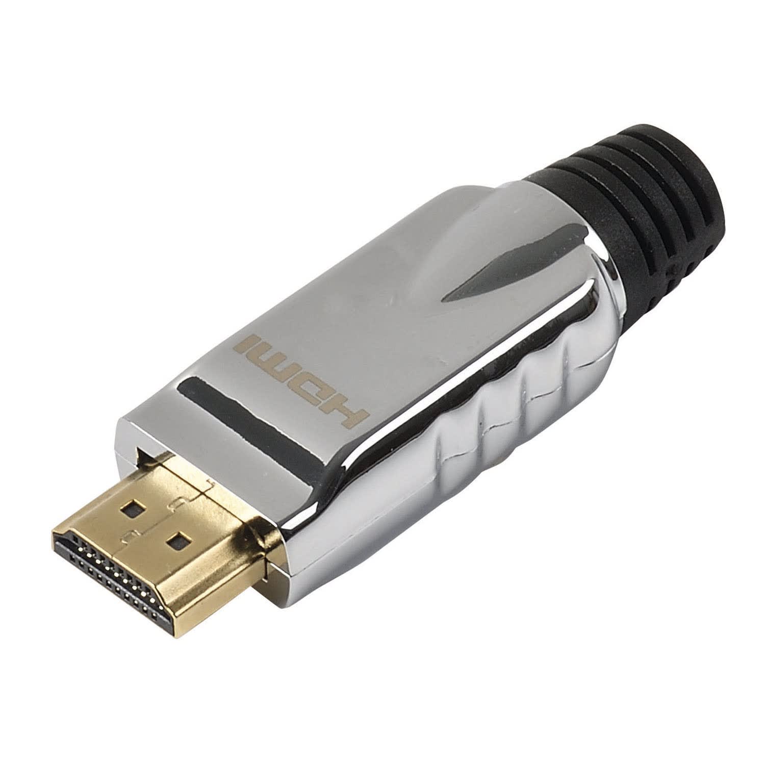 Prise HDMI A mâle - composition : 1 prise HDMI 20 contacts à souder + 2 coques métal + 1 manchon pvc + 2 vis - compatible avec le câble HDMI référence 7885 - OR - à souder