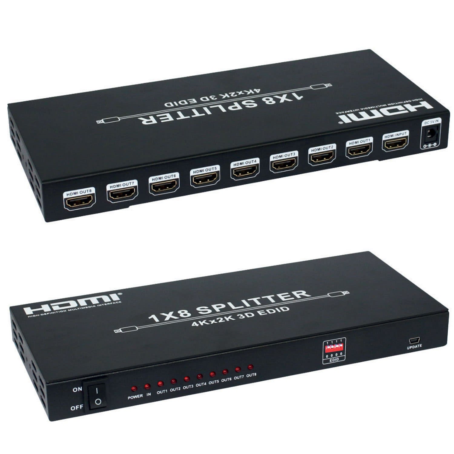 Répartiteur HDMI 1 vers 8 - 4K 30ips - 10.2 Gbps - fonction Downscaler (permet d'afficher une source 4K sur un display Full HD). fonction EDID Manager (permet d'éviter les conflits de résolution) - plug & play - alim fournie - boitier métal