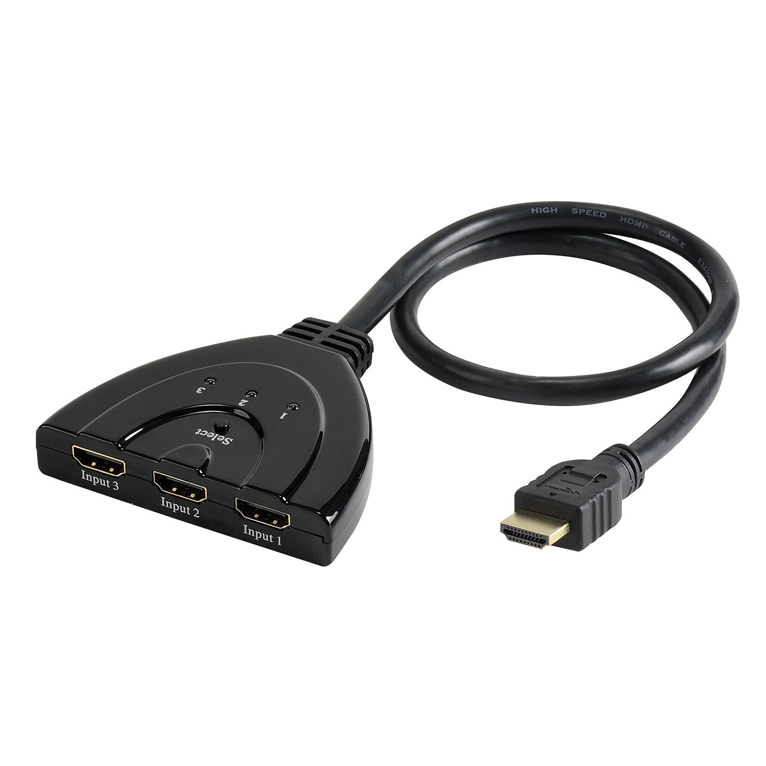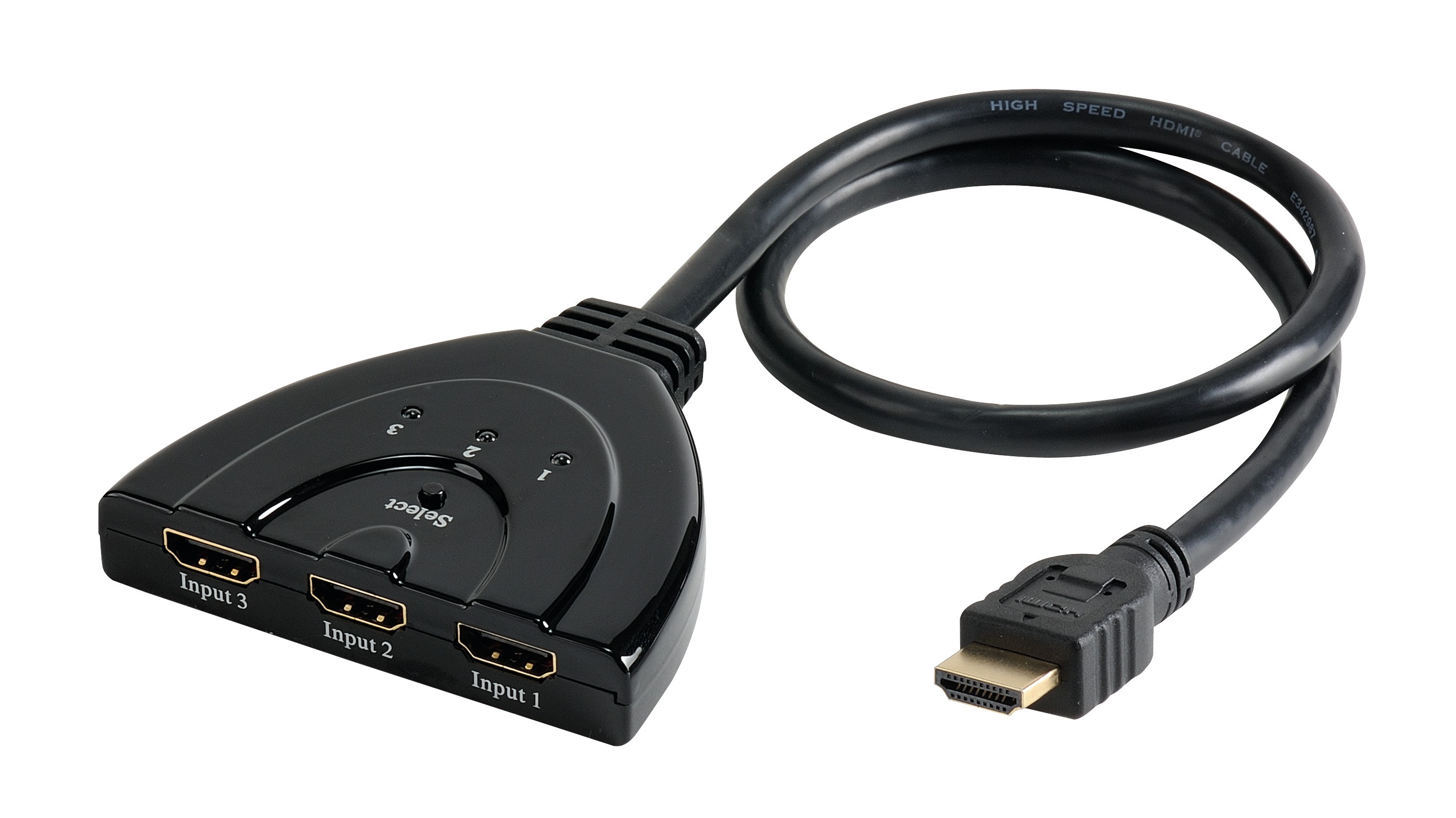 Sélecteur HDMI 3 vers 1 - 0m50 - Full HD 1080p - 7.2 Gbps - synchronisation automatique des résolutions - sélection manuelle ou automatique de la source - intégré sur cordon HDMI - auto-alimenté - plug & play - boitier pvc