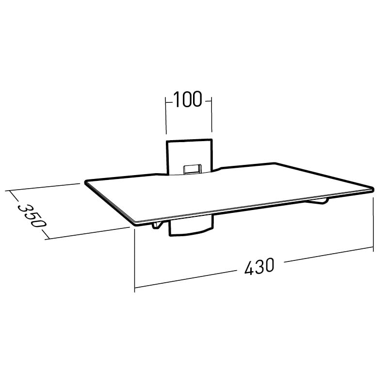 • Peut être utilisée en association ou indépendamment de la goulotte passe-câbles.• Épaisseur du verre : 5 mm.• Largeur : 430 mm.• Profondeur : 350 mm.• Décalage de 5 mm par rapport au mur.• Goulotte de 140 mm.• Equerre en acier époxy noir.• Tablette sécurisée par une vis.