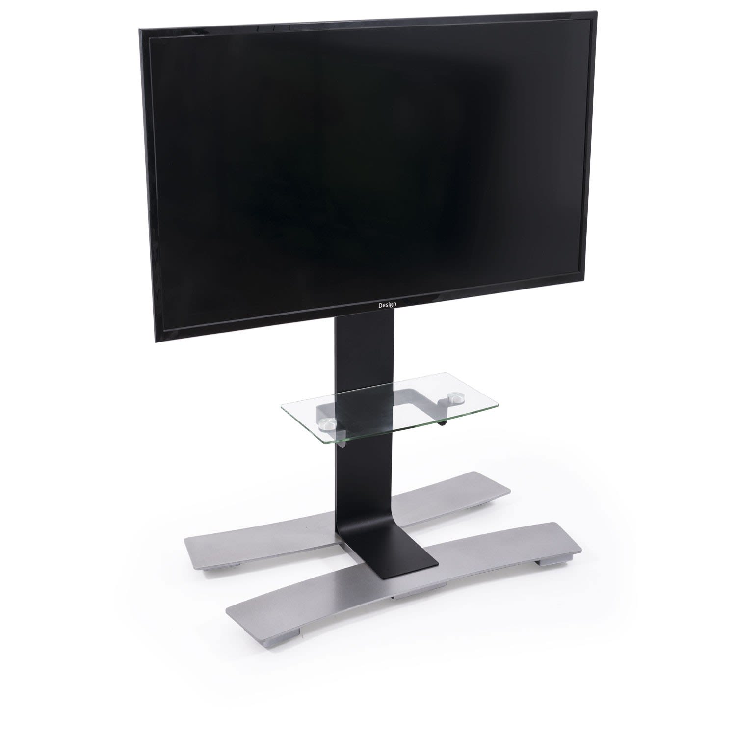 WILL 1050L Noir - colonne TV mobile + tablette verre, gestion des câbles incluse dans la colonne. Pour écran de 30'' à 65'', vesa 200 à 400x400. poids maximum supporté de 30 kg.