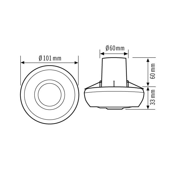 • Portée pouvant atteindre 8 m de diamètre, à une hauteur de montage recommandée de 3 m. Pour les petites pièces et les zones de passage ne bénéficiant pas ou très peu de lumière naturelle