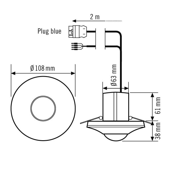 - Divers possibilités de montage : encastré, inséré au plafond (avec set d'insertion séparé) ou apparent (avec boîtier séparé)