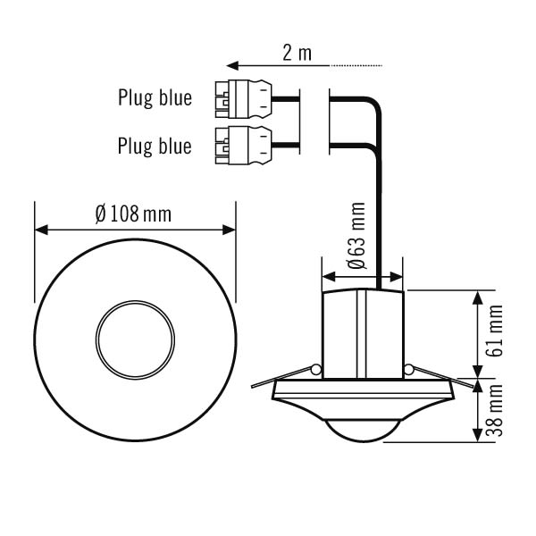 - Détecteur de présence avec plage de détection de 360 ° pour un montage au plafond