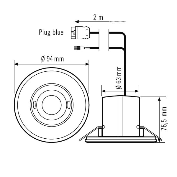 - Divers possibilités de montages: encastré, inséré au plafond (avec set d'insertion séparé) ou apparent (avec boîtier séparé)