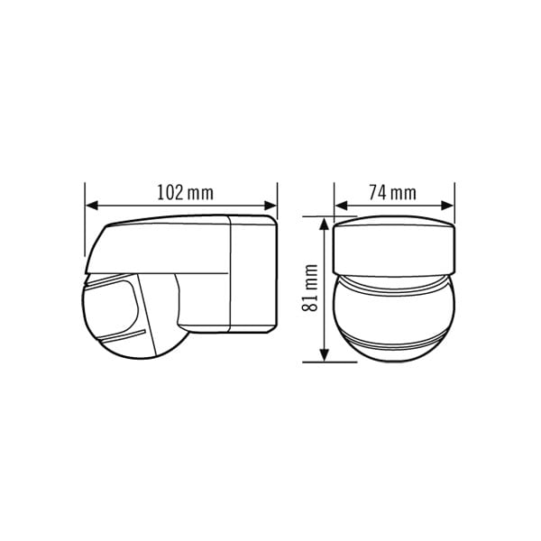 - Ajustement de la portée de détection grâce à sa tête sphérique pivotante et inclinable et le cache-lentille à découper