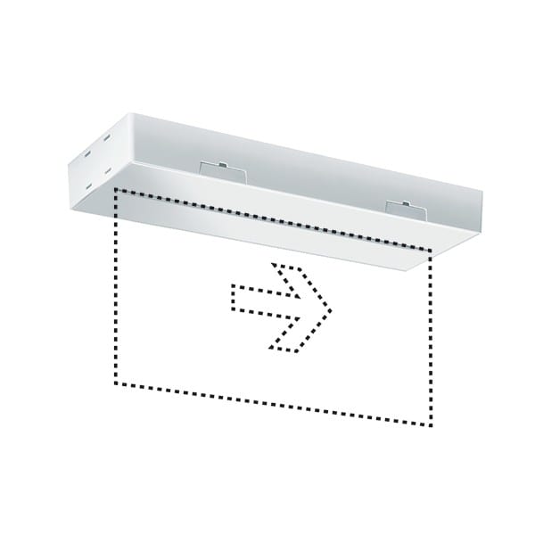 - Luminaire de secours autonome pour signalisation des issues de secours avec capacité de 8 h pour une portée de visibilité de 32m selon la norme DIN EN 1838