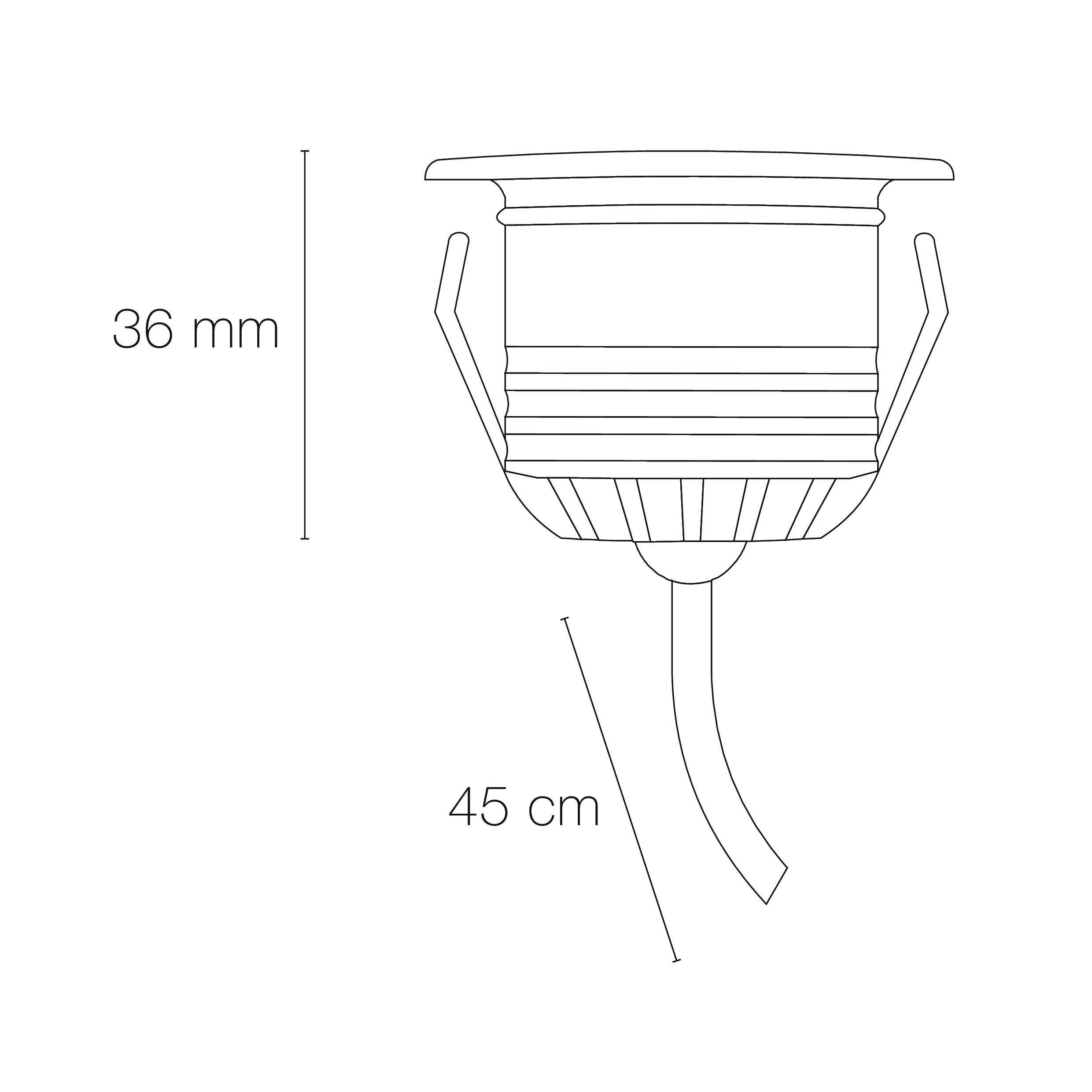 Encastré mur & plafond EUROPOLE BALI LED 4 rond, fixe, blanc mat, bleu 2,5W, optique diffusante symétrique 30°, 350/700mA. Classe de protection III, IP44, compatible isolants : non, câblé de 0,45m. Durée de vie : 20000h. Dimmable : Non. Dimension collerette : diamètre 42mm. Diamètre d'encastrement : 36mm. Matériau : aluminium. Températures de fonctionnement : -20°C/+40°C. Walkover : Non.