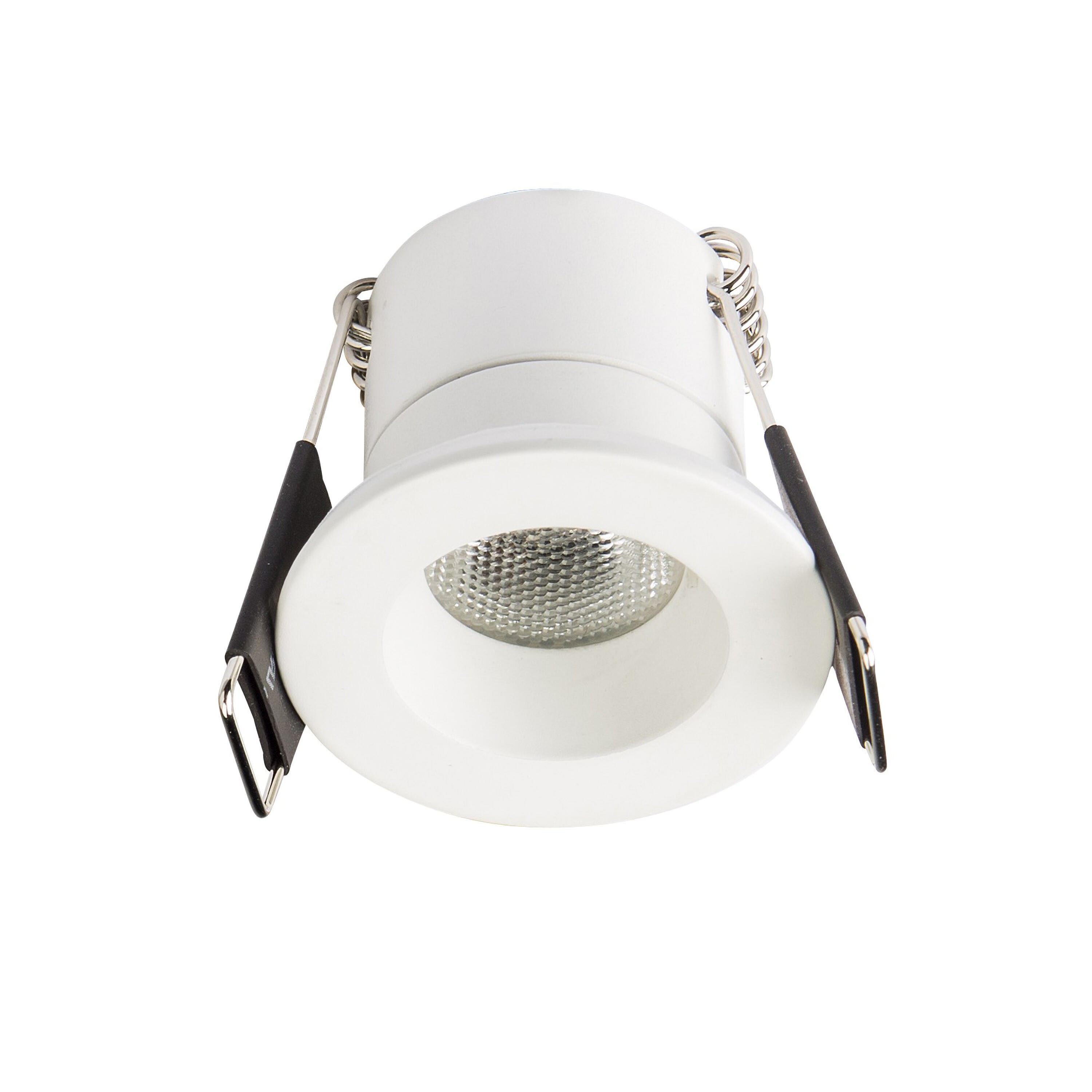 Encastré mur & plafond BALI LED 6 rond, fixe, blanc, bleu 1,2W, optique diffusante symétrique 28°, 350mA. Classe III, IP54, compatible isolants : non. Non dimmable.