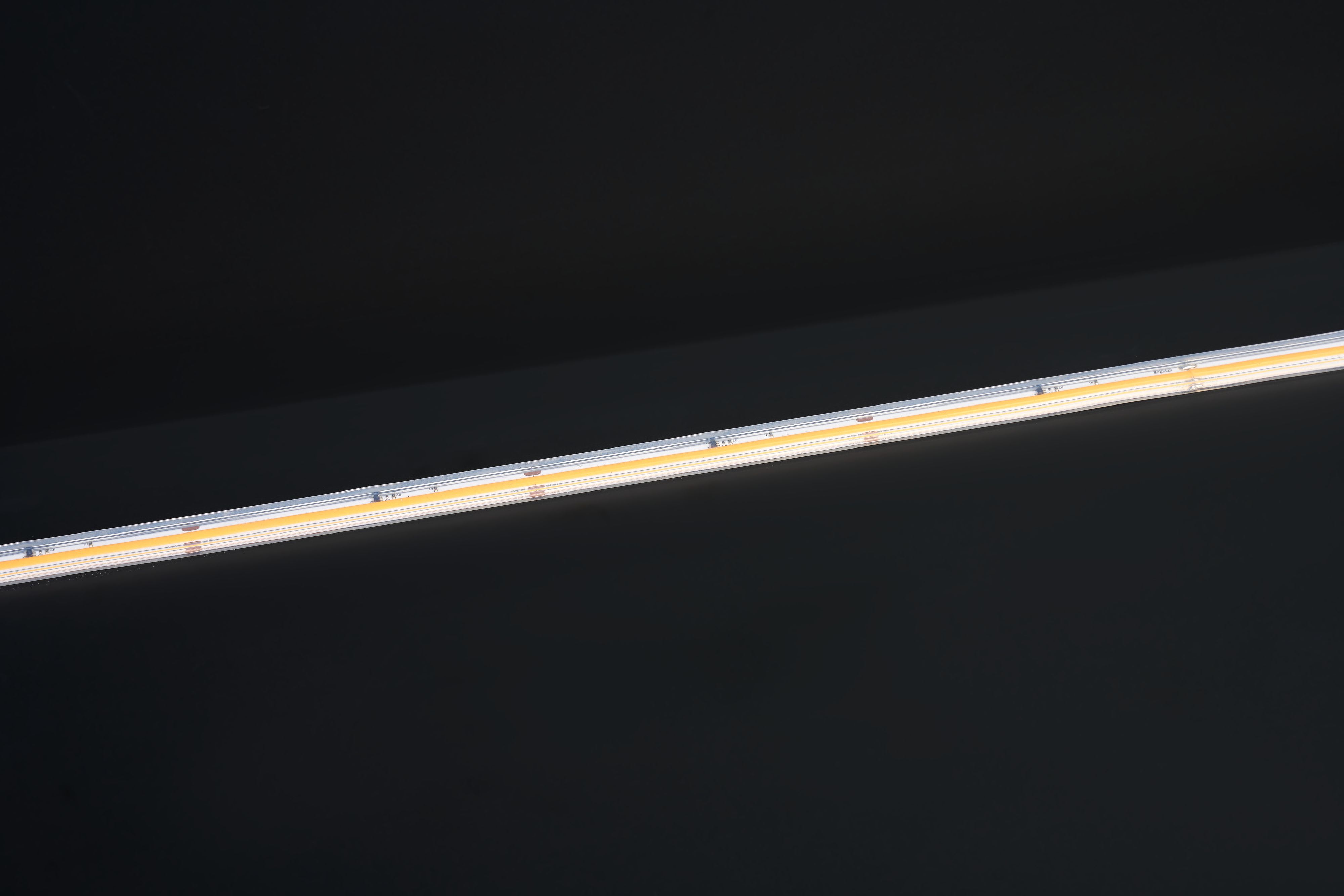 Bandeau Led 15m COB IP67 : blanc 4000K, IRC>90, SDCM3, 8W/m, 760lm/m (95lm/W), 490LED/m, 120°, 24VDC. IP67, câblé des 2 côtés 0,5m, H05RN-F 2x0,5mm². Durée de vie : 50000h. Dimmable.