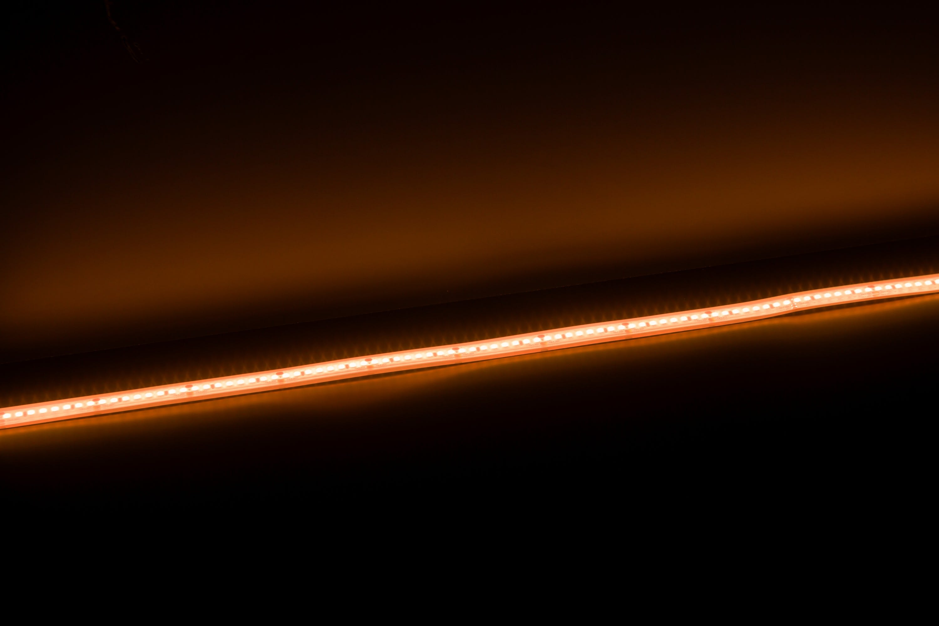 Bandeau Led 3m VOLTA PRO 14,4W/m IP68 : blanc 2400K, IRC90, SDCM3, 14,4W/m, 1793lm/m (125lm/W), 160LED/m, 120°, 24VDC. IP68, câblé de 1 côté 0,5m, H05RN-F 2x0,5mm². Durée de vie : 50000h. Dimmable.