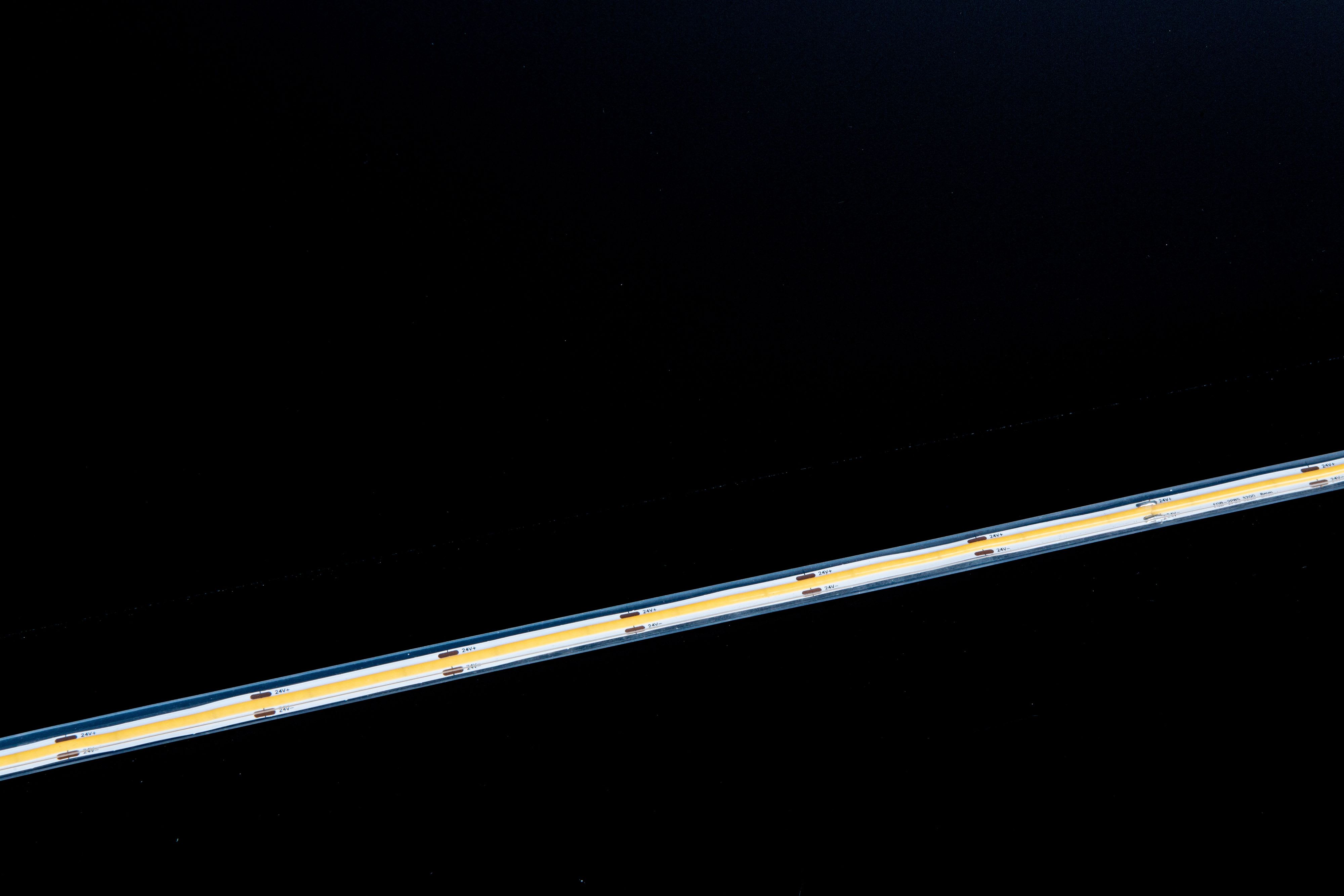 Bandeau Led 5m FLEX PRO LINE 320 IP54, blanc 3000K, IRC90, SDCM3, 8W/m, 792lm/m 99lm/W, 320LED/m, 180°, 24VDC. Sécable tous les 50mm. IP44, câblé de 2 côtés 0,5m, 20AWG 2x0,5mm². Durée de vie : 50000h. Dimmable.