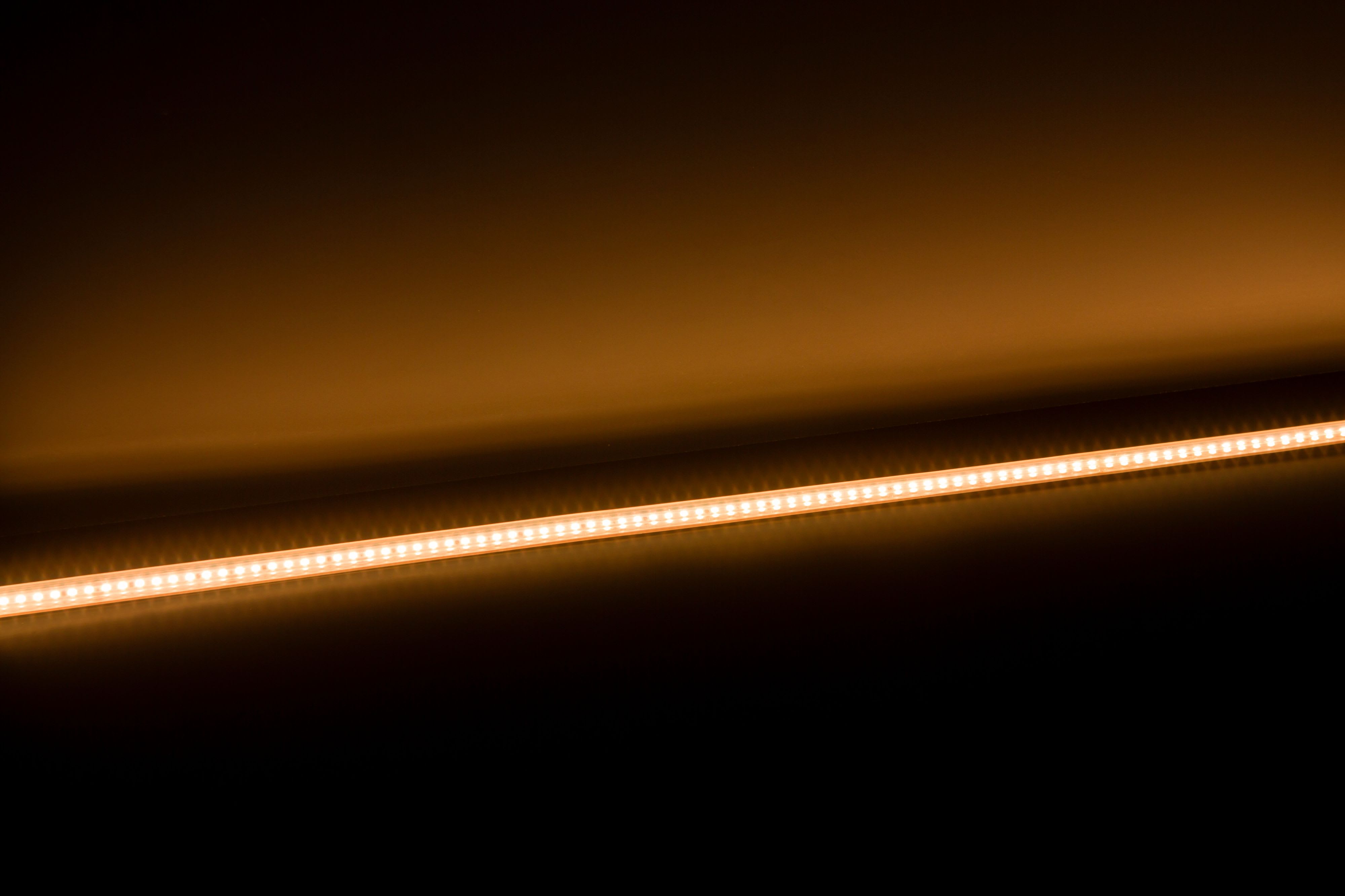 Bandeau Led 5m VOLTA 14W/m IP67 : blanc 2700K, IRC90, SDCM3, 14W/m, 1539lm/m (110lm/W), 160LED/m, 120°, 24VDC. IP67, câblé de 1 côté 0,5m, H05RN-F 2x0,5mm². Durée de vie : 30000h. Dimmable.