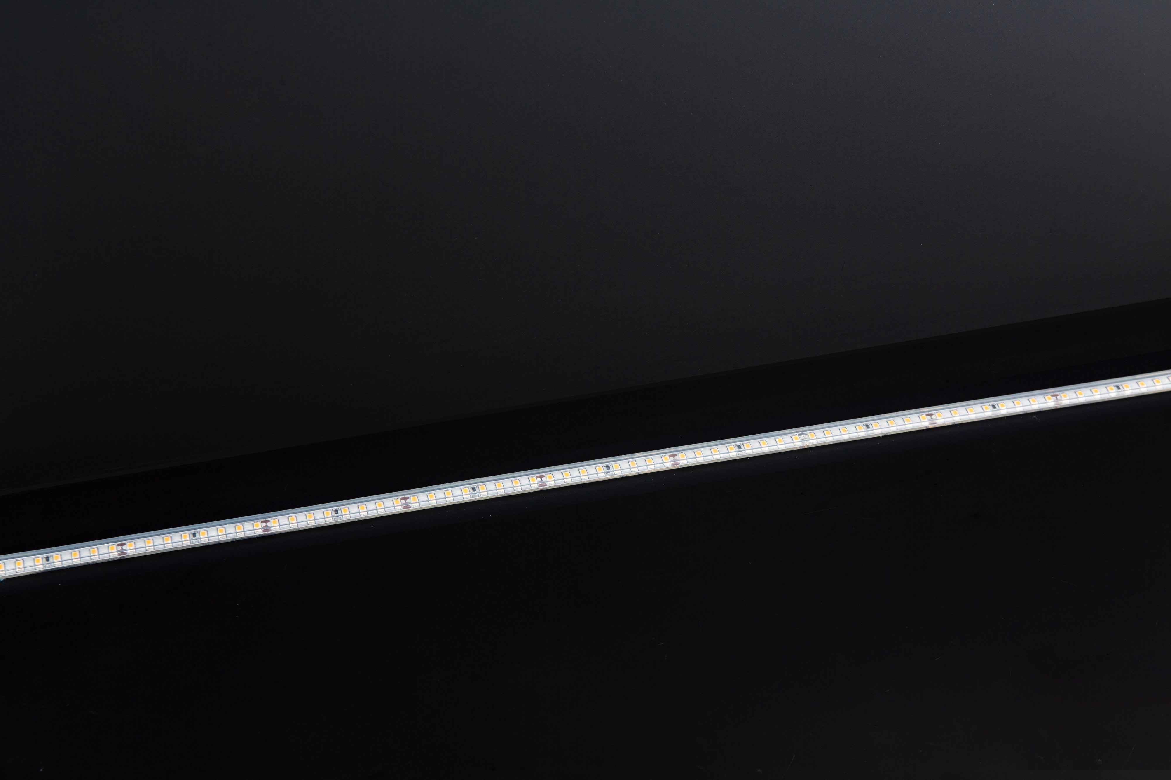 Bandeau Led 5m VOLTA 6W/m IP67 : blanc 3000K, IRC90, SDCM3, 6W/m, 722lm/m (120lm/W), 128LED/m, 120°, 24VDC. IP67, câblé de 1 côté 0,5m, H05RN-F 2x0,5mm². Durée de vie : 30000h. Dimmable.
