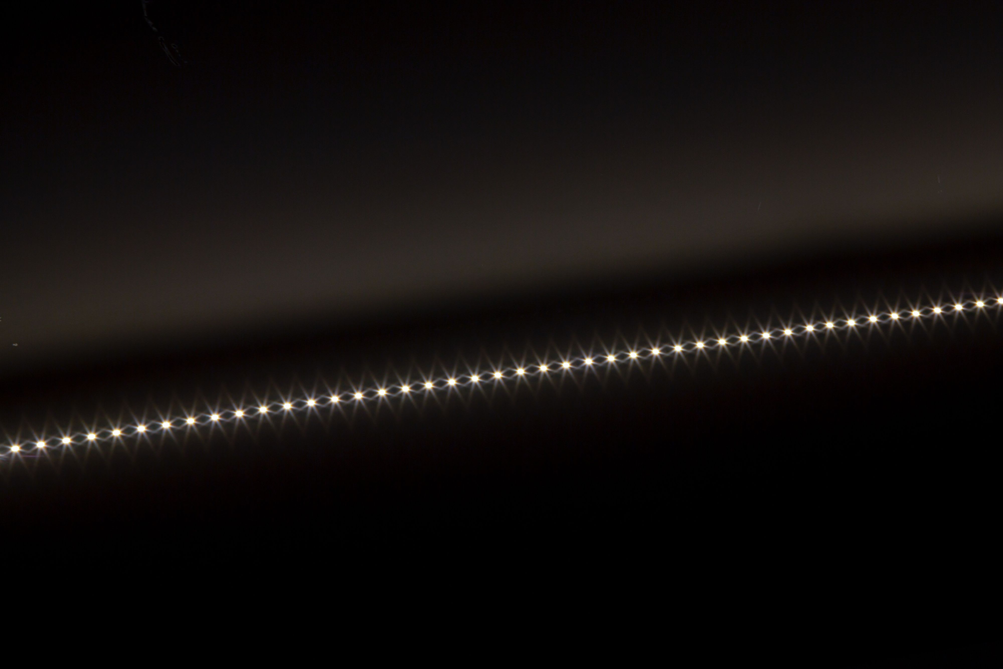 Bandeau Led 5m VOLTA PRO 4,8W/m IP20 : blanc 4000K, IRC90, SDCM3, 4,8W/m, 851lm/m (177lm/W), 128LED/m, 120°, 24VDC. Sécable tous les 62,5mm. IP20, câblé des 2 côtés 0,5m, 20AWG 2x0,5mm². Durée de vie : 50000h. Dimmable.
