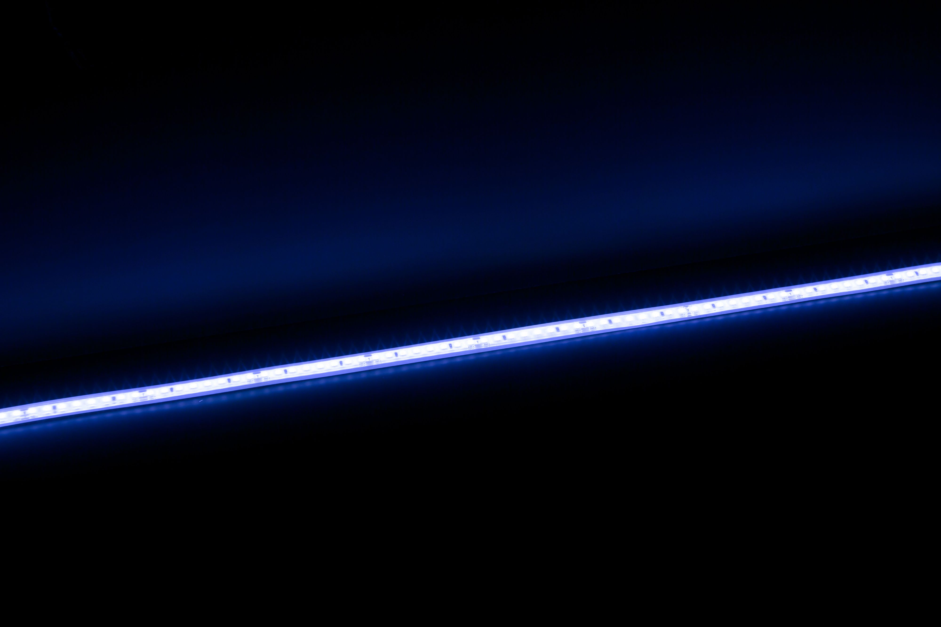 Bandeau Led EUROPOLE 5m VOLTA PRO 4,8W/m IP68 : bleu 4,8W/m, 125lm/m (26lm/W), 128LED/m, 24VDC. Largeur du bandeau : 10,5mm. Classe de protection III. IP68, câblé de 1 côté 0,5m, H05RN-F 2x0,5mm², durée de vie : 50000h. Dimmable : oui, variation avec alimentation/contrôleur compatible (non inclus). Installation sur profil aluminium ou via clips de fixation (non inclus). Pour assurer l'étanchéité, les bandeaux IP67/IP68 ne sont pas sécables.