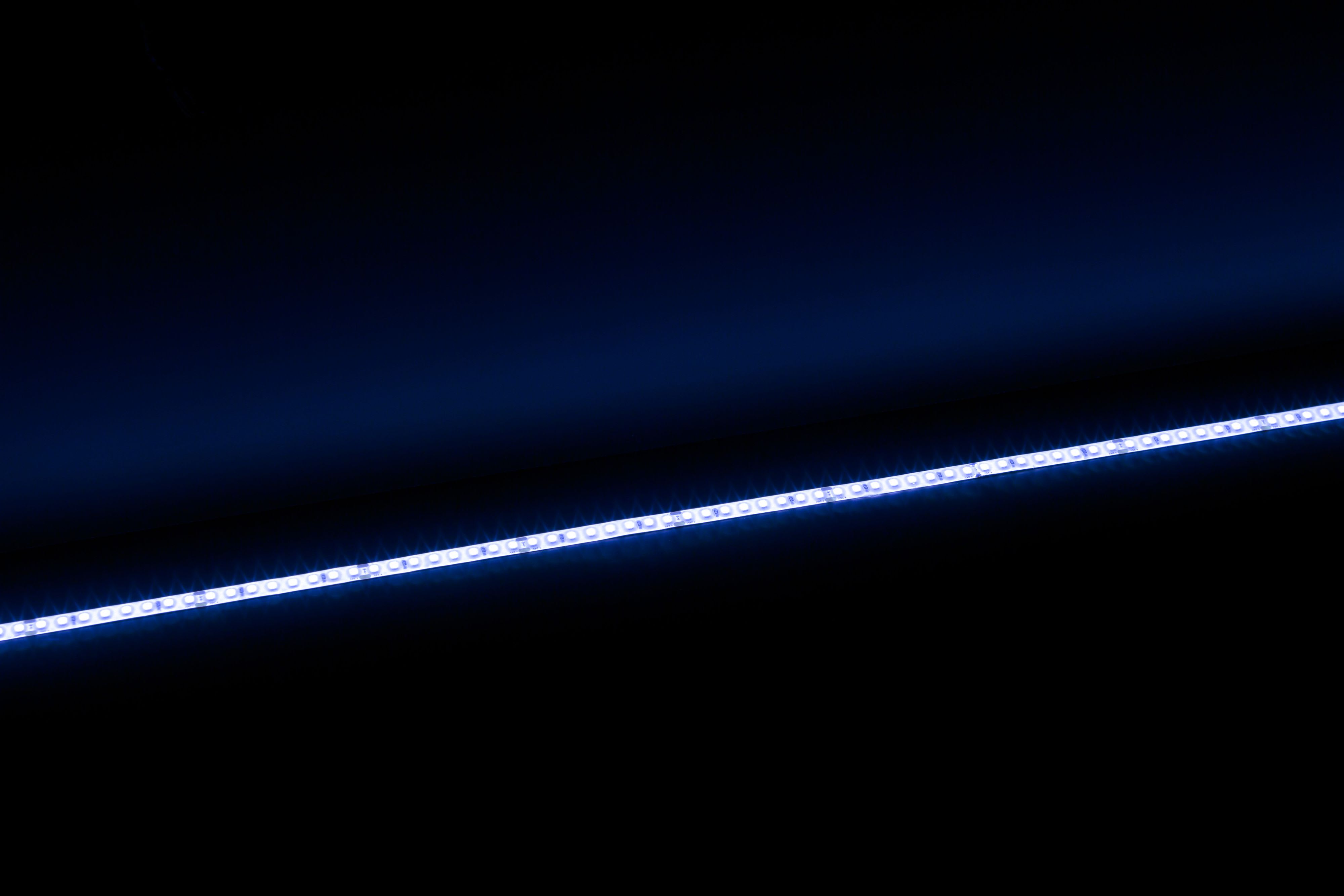 Bandeau Led EUROPOLE 5m VOLTA PRO 9,6W/m IP42 : bleu 9,6W/m, 255lm/m (27lm/W), 128LED/m, 24VDC. Largeur du bandeau : 8mm. Classe de protection III. Sécable tous les 62,5mm. IP42, câblé des 2 côtés 0,5m, 20AWG 2x0,5mm², durée de vie : 50000h. Dimmable : oui, variation avec alimentation/contrôleur compatible (non inclus). Installation sur profil aluminium impérative.
