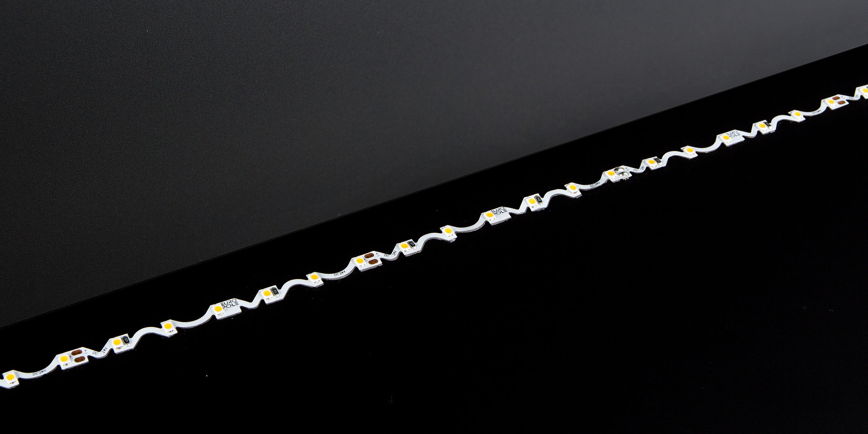 Bandeau Led EUROPOLE sur-mesure TORSADE IP20, blanc 3000K, IRC80, SDCM5, 7,2W/m, 690lm/m (95,83lm/W), 60LED/m, optique 120°, 24VDC. Classe de protection III. Sécable tous les 100mm. Longueur maximum d'un seul tenant : 5m. IP20, compatible volume salle de bain : non, câble non fourni : 20AWG 2x0,5mm², durée de vie : 30000h. Dimmable : Oui, variation avec alimentation/contrôleur compatible (non inclus). Installation sur profil aluminium impérative.