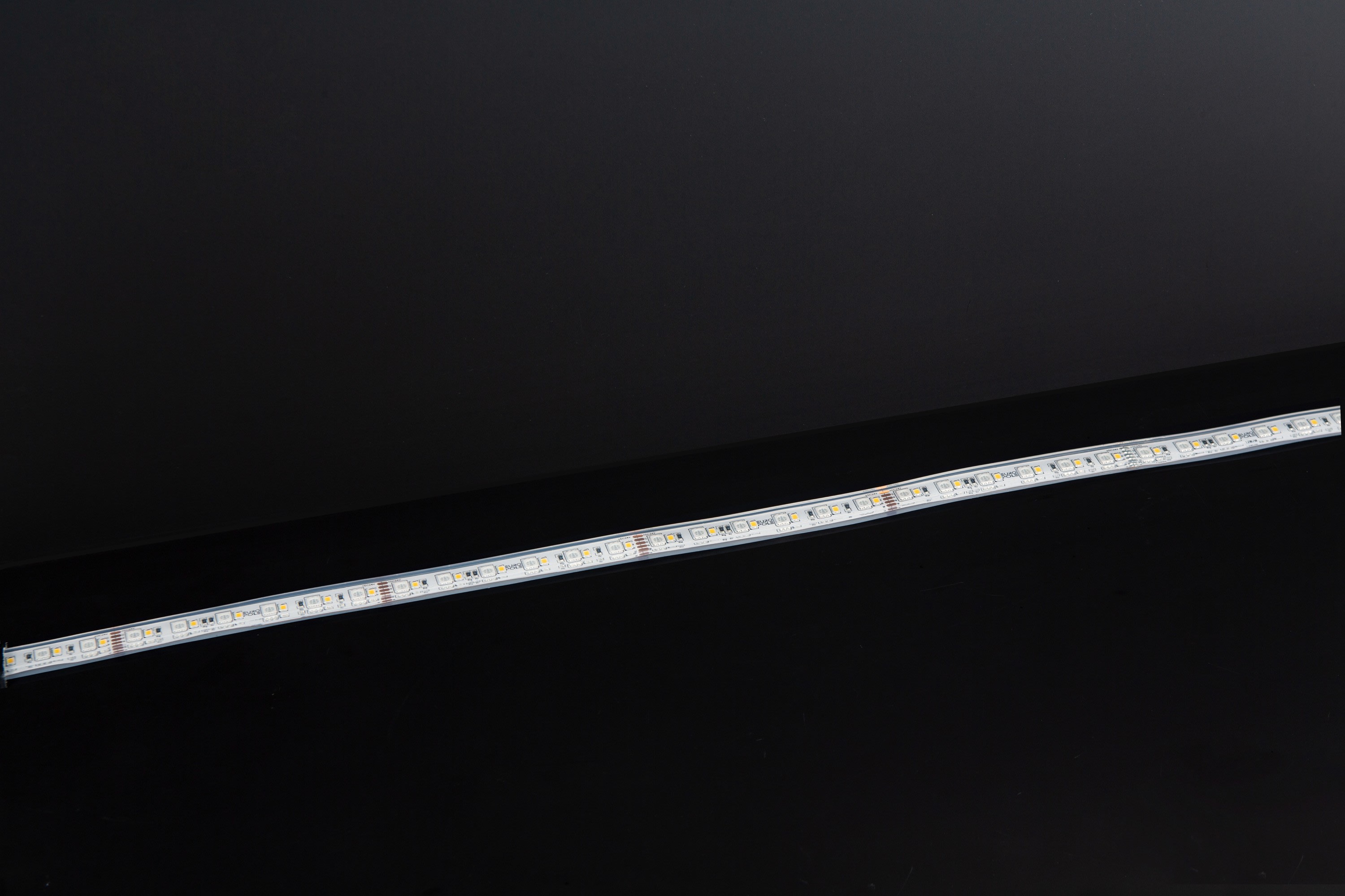 Bandeau Led EUROPOLE sur-mesure au centimètre VOLTA CHROMA RGBW IP68 : RGBW 4000K, IRC80, SDCM5, 12W/m, 27/183/42/480lm/m (60lm/W), 120LED/m, 24VDC. Largeur du bandeau : 14mm. Classe de protection III. Longueur maximum d'un seul tenant : 5m. IP68, câble non fourni : H05RN-F 5x0,5mm², durée de vie : 50000h. Dimmable : oui, variation avec alimentation/contrôleur compatible (non inclus). Installation sur profil aluminium ou via clips de fixation (non inclus). Pour assurer l'étanchéité, les bandeaux IP67/IP68 ne sont pas sécables.