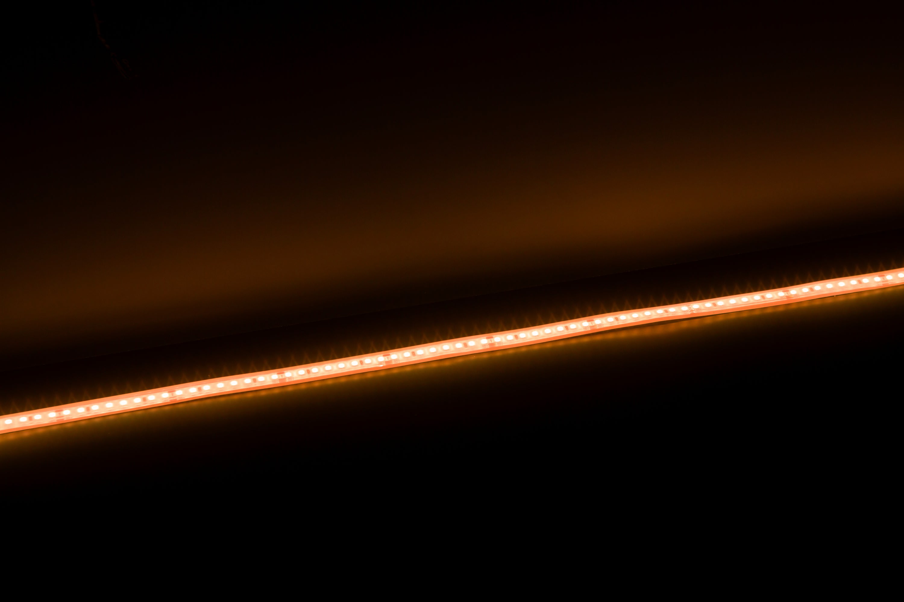 Bandeau Led EUROPOLE sur-mesure au centimètre VOLTA PRO 9,6W/m IP68 : blanc 2400K, IRC90, SDCM3, 9,6W/m, 1213lm/m (126lm/W), 128LED/m, 24VDC. Largeur du bandeau : 10,5mm. Classe de protection III. Longueur maximum d'un seul tenant : 5m. IP68, câble non fourni : H05RN-F 2x0,5mm², durée de vie : 50000h. Dimmable : oui, variation avec alimentation/contrôleur compatible (non inclus). Installation sur profil aluminium ou via clips de fixation (non inclus). Pour assurer l'étanchéité, les bandeaux IP67/IP68 ne sont pas sécables.