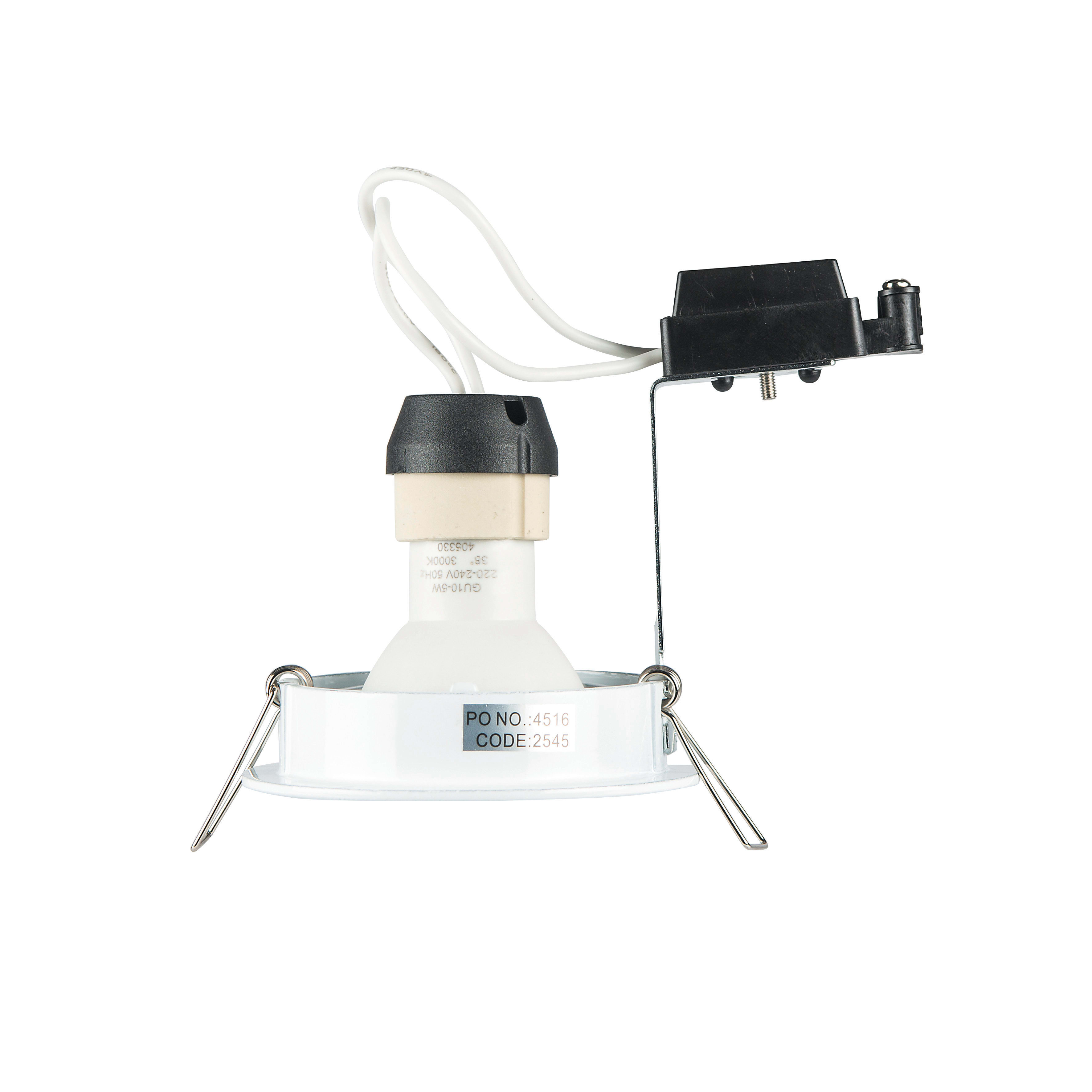 Encastré intérieur Led BE GOOD LED GU10 rond orientable, blanc, blanc 4000K, IRC90, 6W, 550lm, optique 48°, 230VAC. Classe II, IP20, compatible isolants : non. Dimmable.