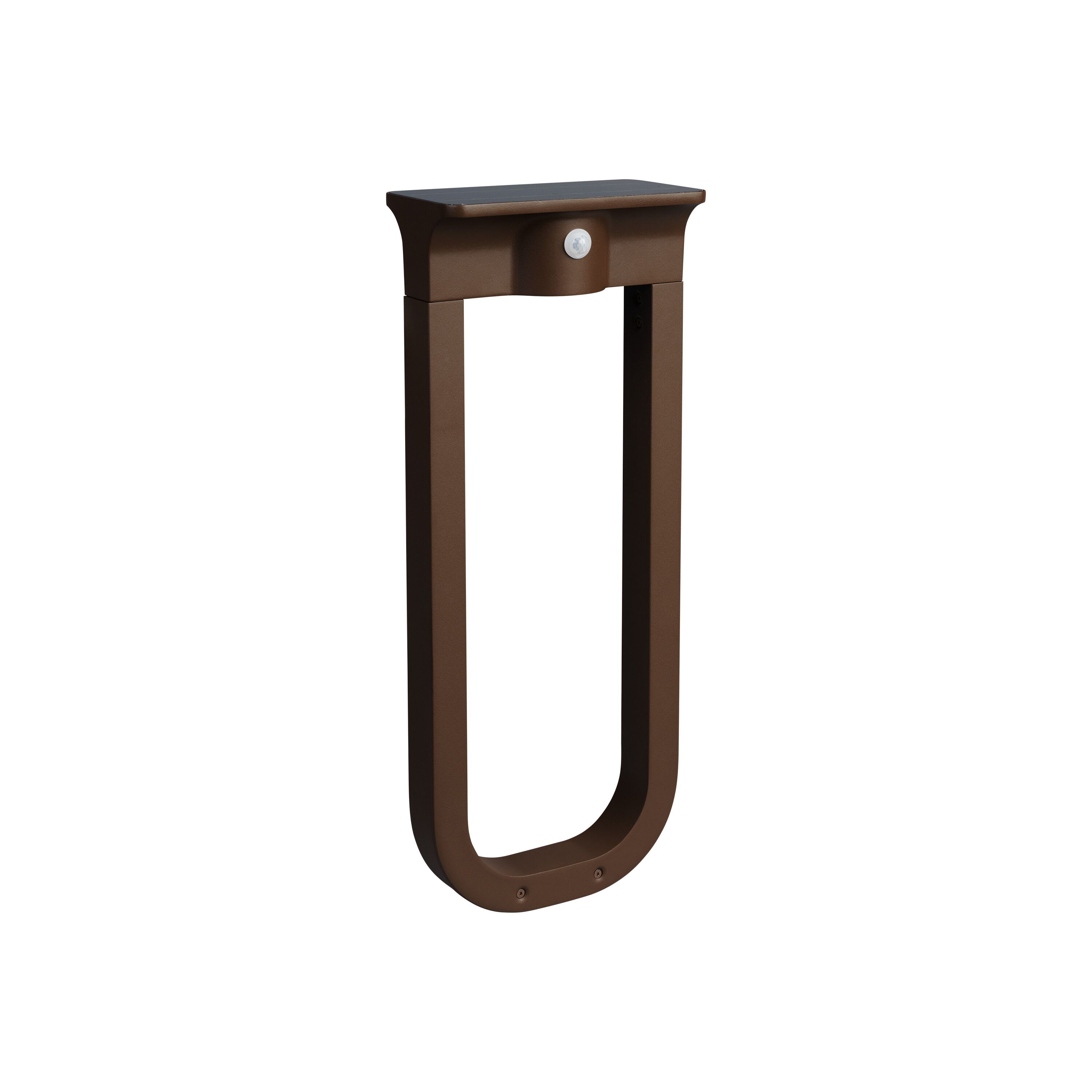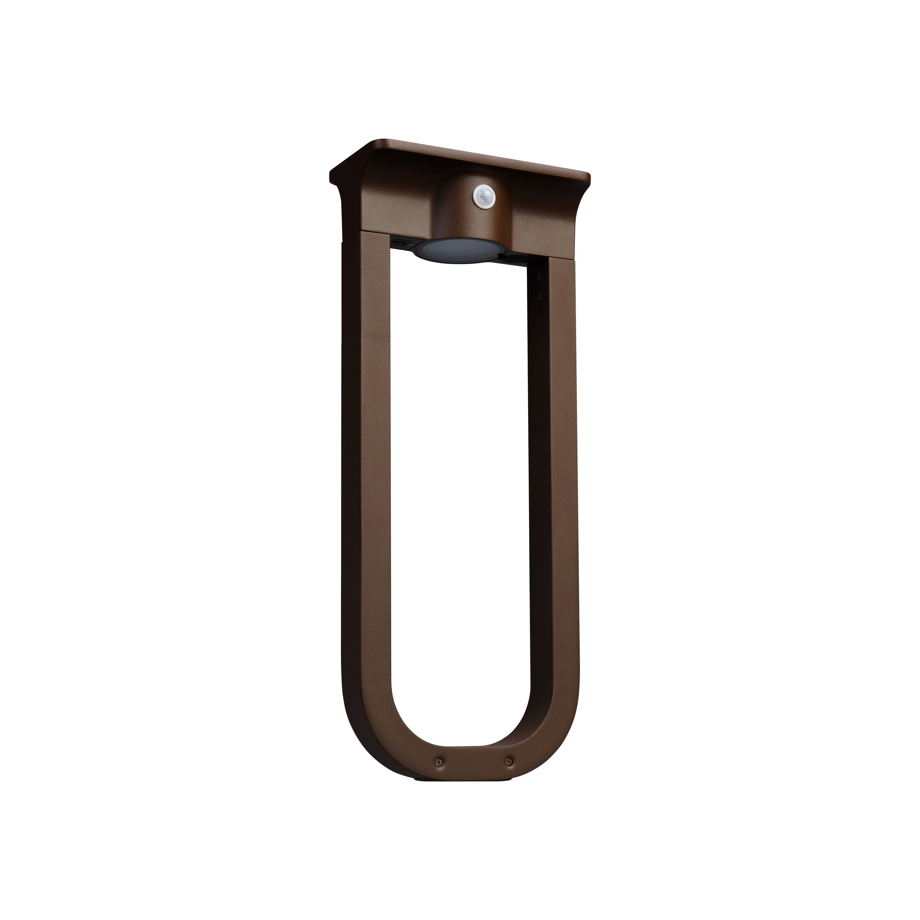 Borne KHEPRI SOLAR havane mat, hauteur : 60cm, sur piquet ou patère, 3000K, IRC>80, 4W, 600lm (150lm/W), verre opale 120°. Batterie remplaçable au lithium. Classe III. IP65, IK08. Dimmable. Produit à détection infrarouge.