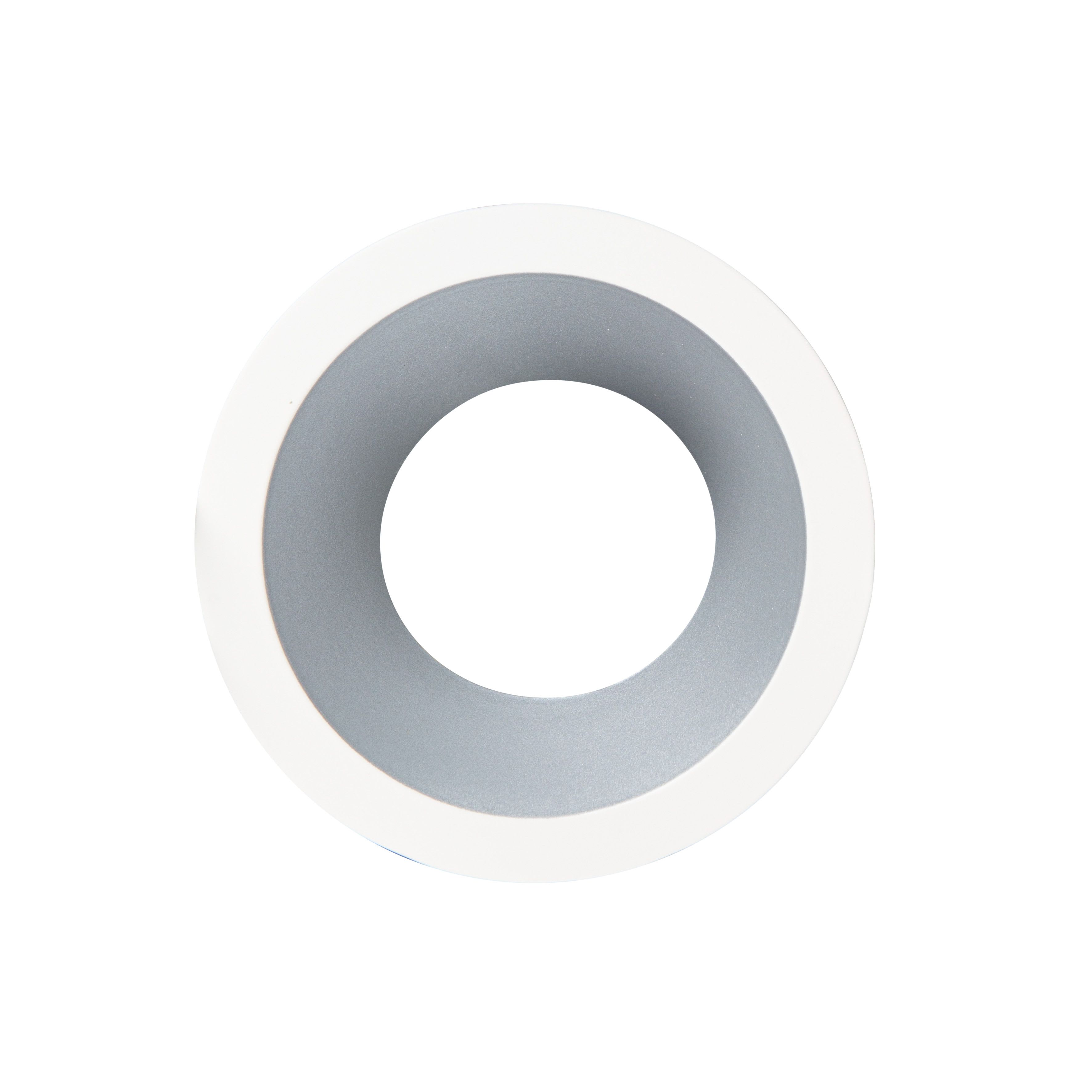 Accessoire pour encastré EUROPOLE LED'UP UNIVERSAL ESTHET+ ASYM : Collerette ronde blanc mat/aluminium laqué, fixe. Dimension : diamètre 82mm. Matériau : aluminium. Traitement de la surface : sans traitement. Vendu à l'unité. UGR : >16. Installation sur encastré plafond LED'UP UNIVERSAL fixe ou orientable.