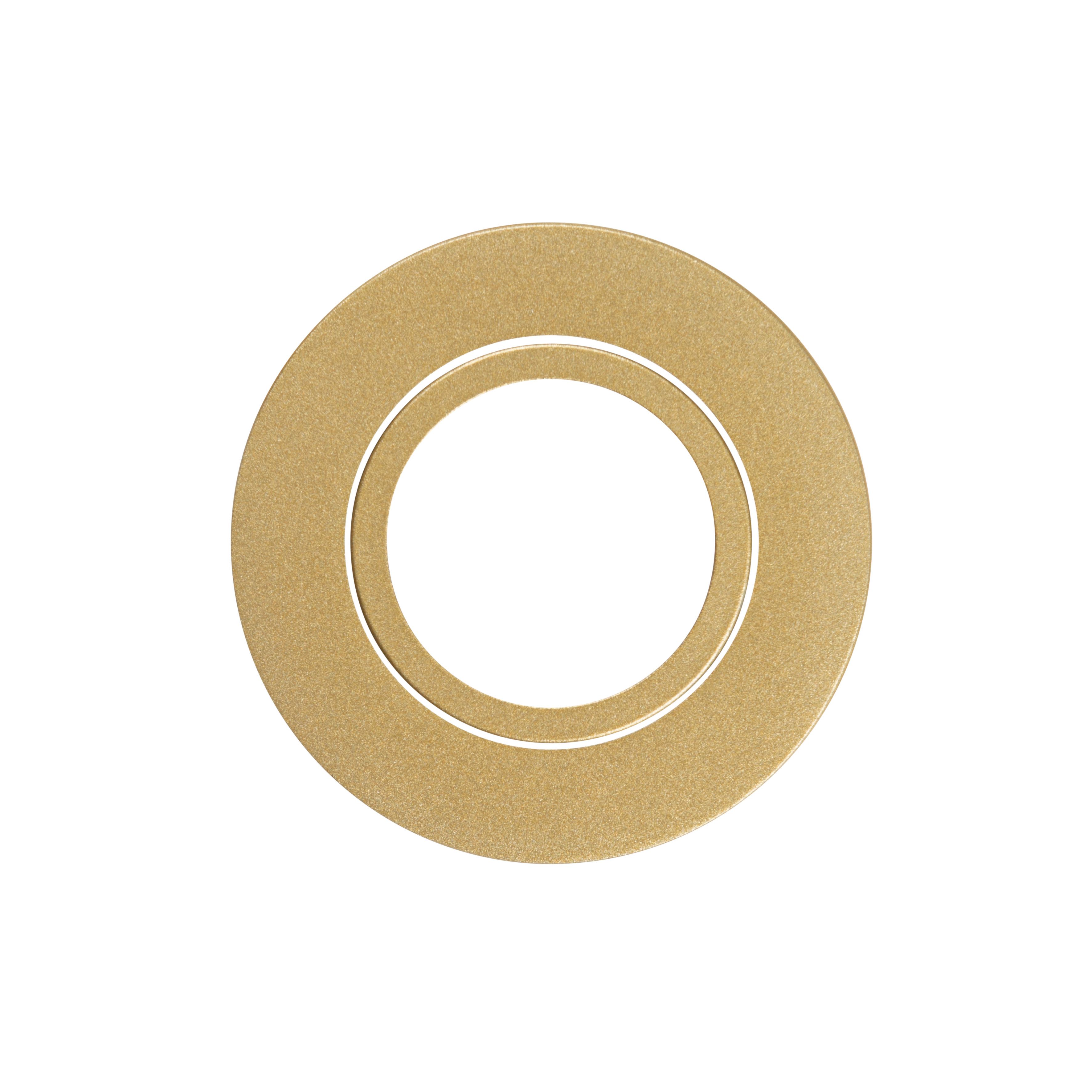 Accessoire pour encastré EUROPOLE LED'UP UNIVERSAL : Collerette ronde doré, orientable. Dimension : diamètre 82mm. Matériau : aluminium. Traitement de la surface : sans traitement. Vendu à l'unité. Installation sur encastré plafond LED'UP UNIVERSAL orientable.