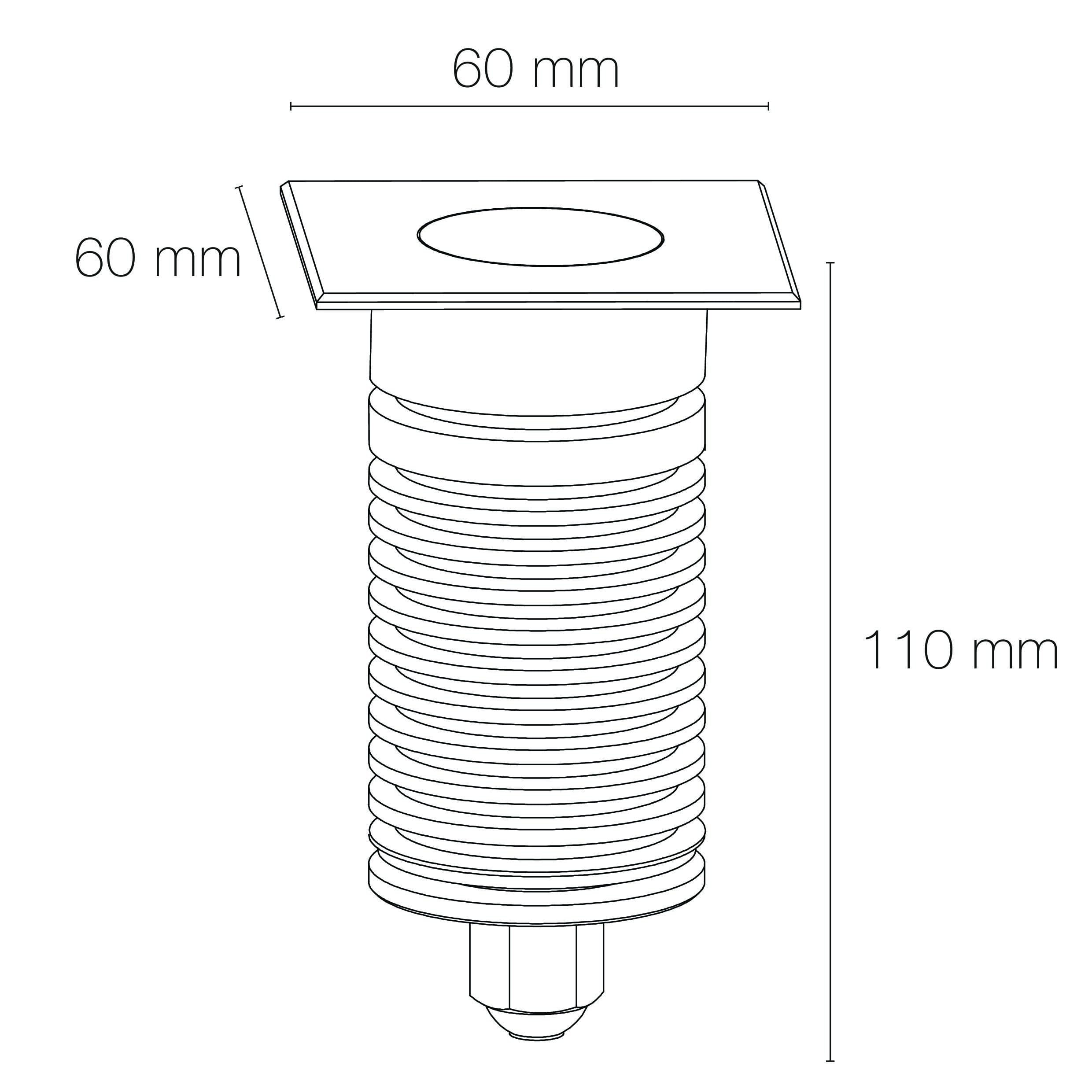 Encastré de sol EUROPOLE COLOSS 1 - 230 carré inox brossé, blanc 4000K, IRC>80, 5W, 500lm (100lm/W), optique faible éblouissement 23° (éclairage), 230VAC. Classe de protection I, IP67, IK08, câblé de 0,5m avec connectiques rapides IP68 Plug & Play mâle et femelle, HO5RN-F 3x0,75mm². Durée de vie : 30000h. Dimmable : Non. Dimension collerette : 60x60mm. Diamètre d'encastrement : 52mm. Matériau : corps en aluminium/collerette et visserie inox 316L. Traitement de la surface : corps traité anticorrosion. Températures de fonctionnement : -20°C/+40°C. Walkover : Oui. Driveover : non. Submersible : Non. Diamètre de découpe indiqué pour installation sans pot d'encastrement.