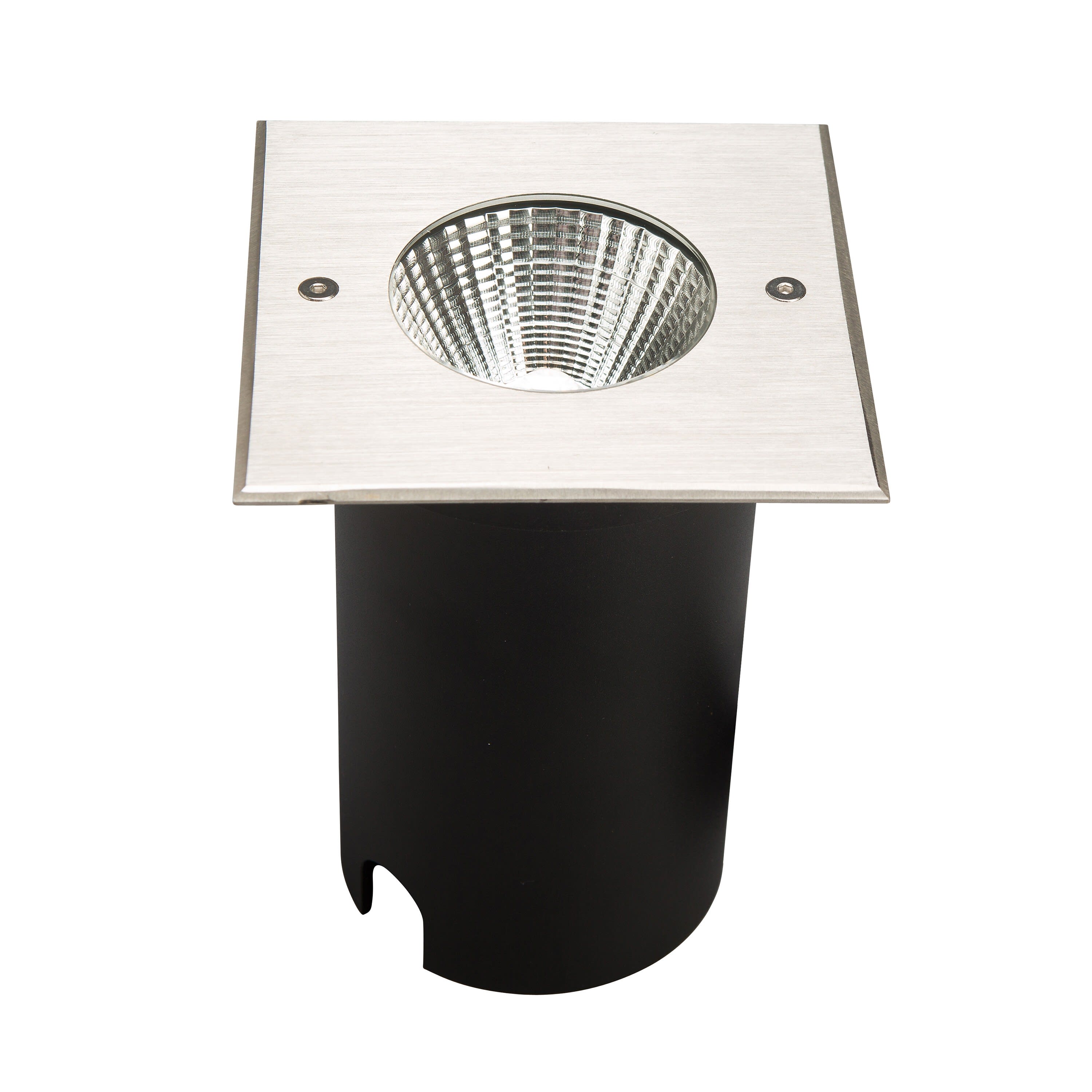 Encastré de sol EUROPOLE COLOSS 3 - 230 carré inox brossé, blanc 4000K, IRC>80, 15W, 1460lm (97,33lm/W), optique faible éblouissement 60° (éclairage), 230VAC. Classe de protection I, IP67, IK08, câblé de 0,5m avec connectiques rapides IP68 Plug & Play mâle et femelle, HO5RN-F 3x0,75mm². Durée de vie : 30000h. Dimmable : Non. Dimension collerette : 120x120mm. Diamètre d'encastrement : 105mm. Matériau : corps en aluminium/collerette en inox 316L. Traitement de la surface : corps traité anticorrosion. Températures de fonctionnement : -20°C/+40°C. Walkover : Oui. Driveover : non. Submersible : Non. Diamètre de découpe indiqué pour installation sans pot d'encastrement.