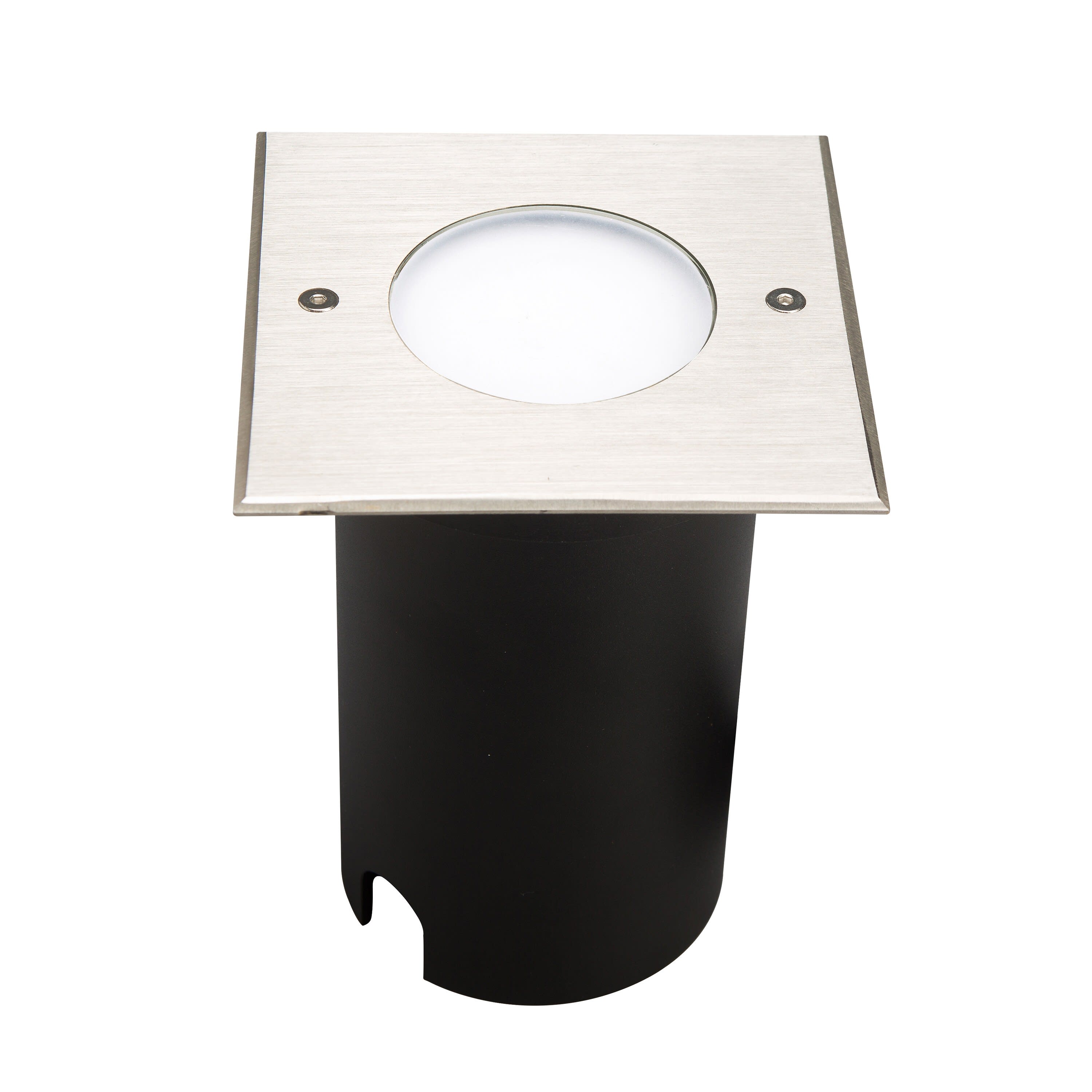 Encastré de sol EUROPOLE COLOSS 3 - 230 carré inox brossé, blanc 4000K, IRC>80, 15W, 620lm (41,33lm/W), optique faible éblouissement 120° (balisage), 230VAC. Classe de protection I, IP67, IK08, câblé de 0,5m avec connectiques rapides IP68 Plug & Play mâle et femelle, HO5RN-F 3x0,75mm². Durée de vie : 30000h. Dimmable : Non. Dimension collerette : 120x120mm. Diamètre d'encastrement : 105mm. Matériau : corps en aluminium/collerette en inox 316L. Traitement de la surface : corps traité anticorrosion. Températures de fonctionnement : -20°C/+40°C. Walkover : Oui. Driveover : non. Submersible : Non. Diamètre de découpe indiqué pour installation sans pot d'encastrement.