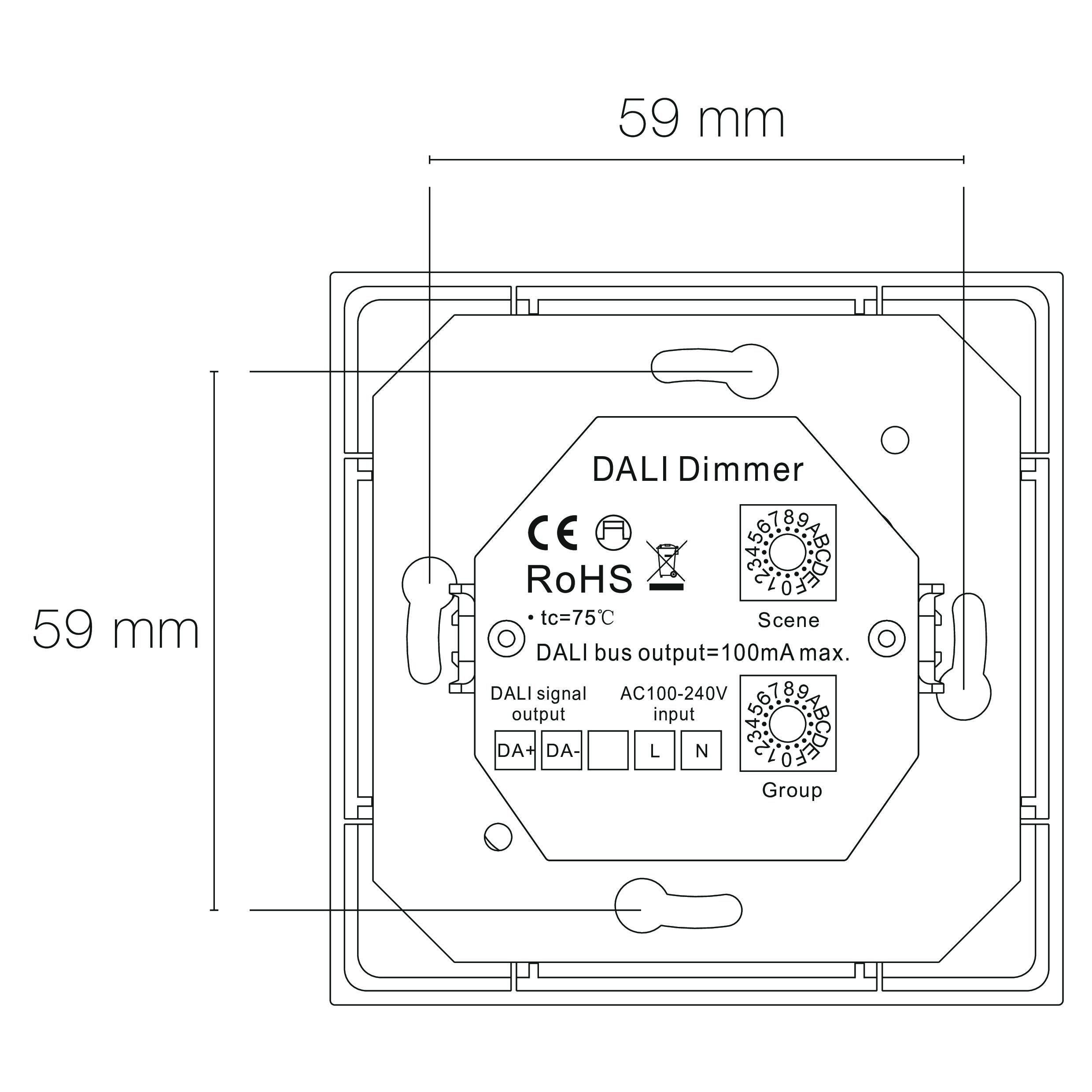 Commande murale DALI pour contrôleur LED DALI et produits LED RGBW : variation d'intensité lumineuse et changement de couleur de la LED. DALI DT8 MASTER EUROPOLE blanc IP20. Nombre de zones indépendantes : 1. Tension d'entrée : 230VAC. Classe de protection : II. Non dimmable. Protocole utilisé : DALI DT8. Commande à distance : Non. Interface de communication : DALI. Transmission de signal : Filaire. Nombre d'entrée(s) primaire(s) : 1. Températures de fonctionnement : 0°C/+40°C.