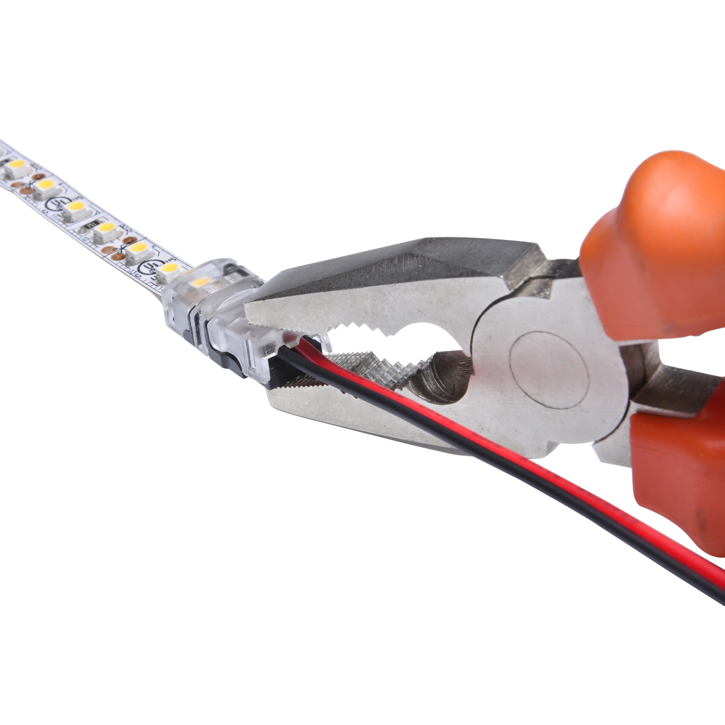Connecteur bandeaux 2 pôles AWG 10mm IP20. Compatible avec bandeaux LED 12/24V de 10mm de largeur.