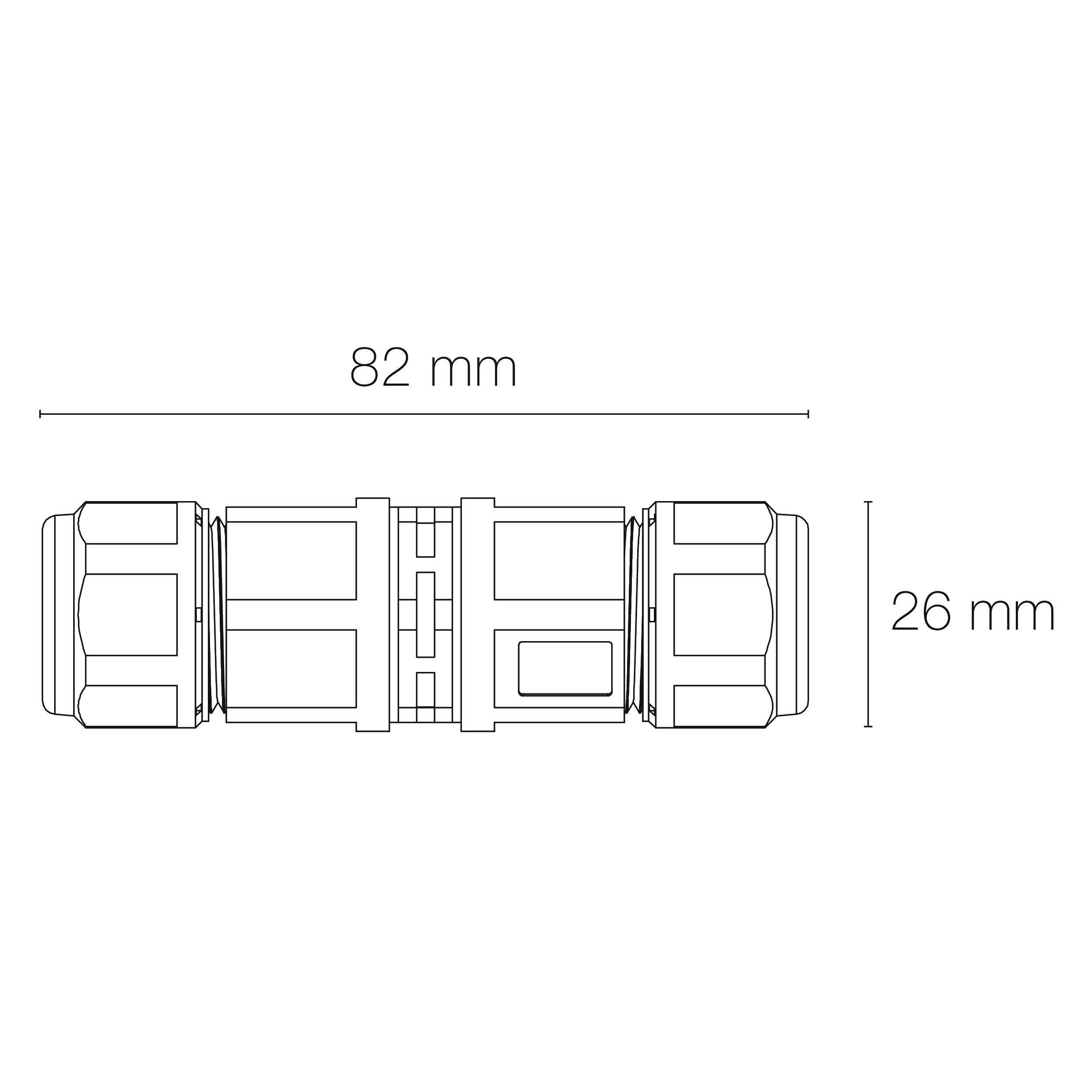 Connectique étanche IP68 : connecteur linéaire. Bornier à vis 3 pôles intégré. Câble compatible : souple Ø minimum 5mm / Ø maximum 8,5mm.