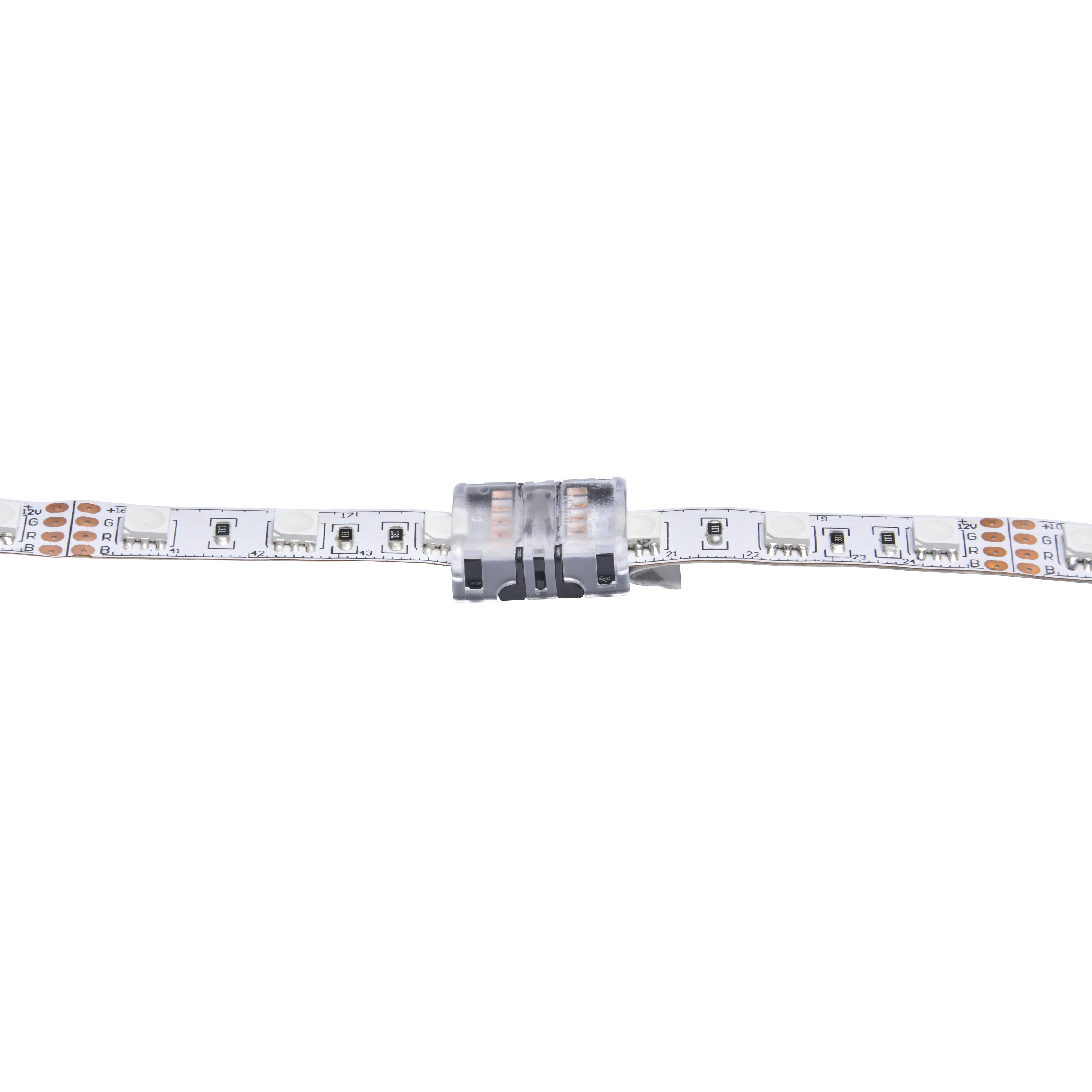 Connecteur inter bandeaux 4 pôles 10mm IP20. Compatible avec bandeaux LED 12/24V de 10mm de largeur.