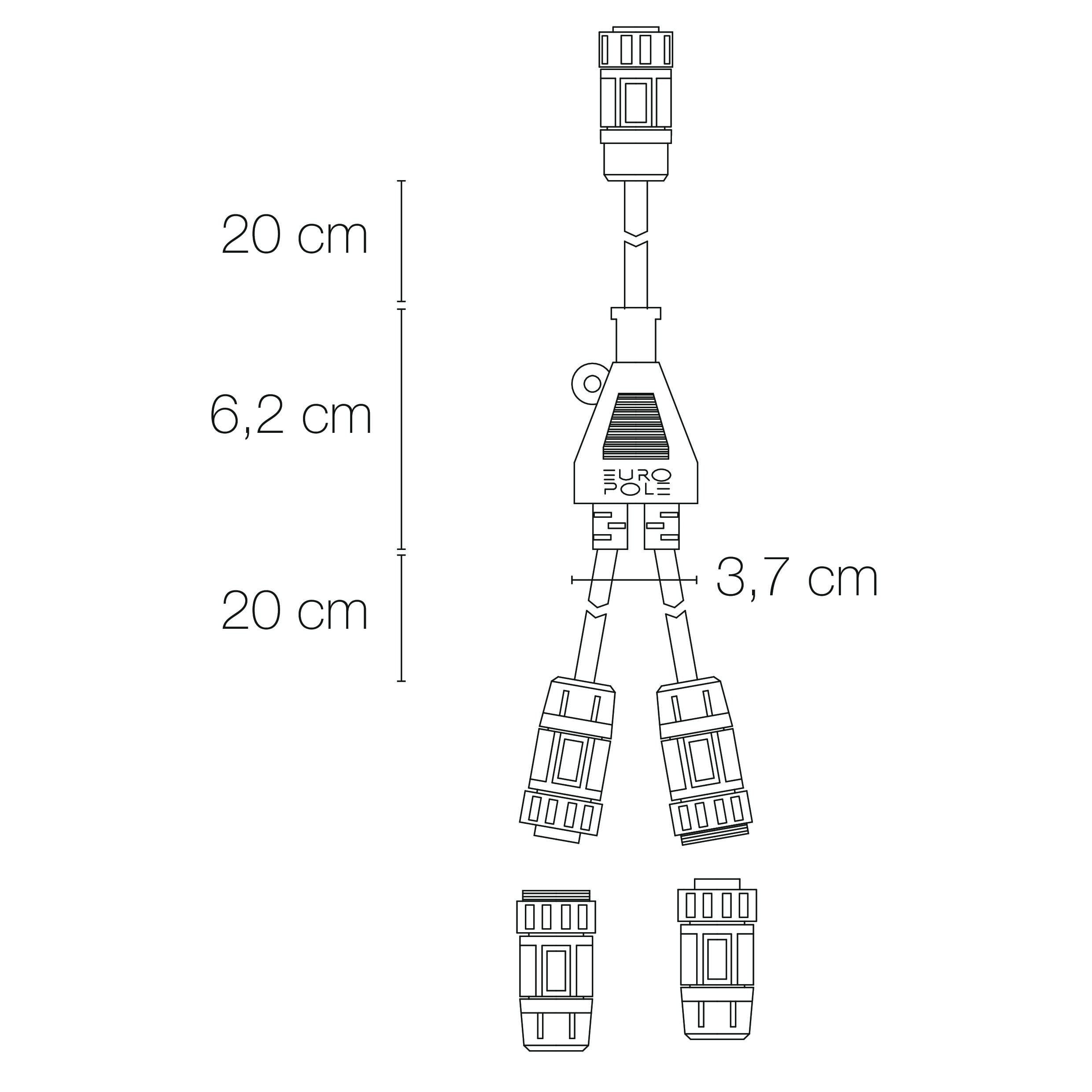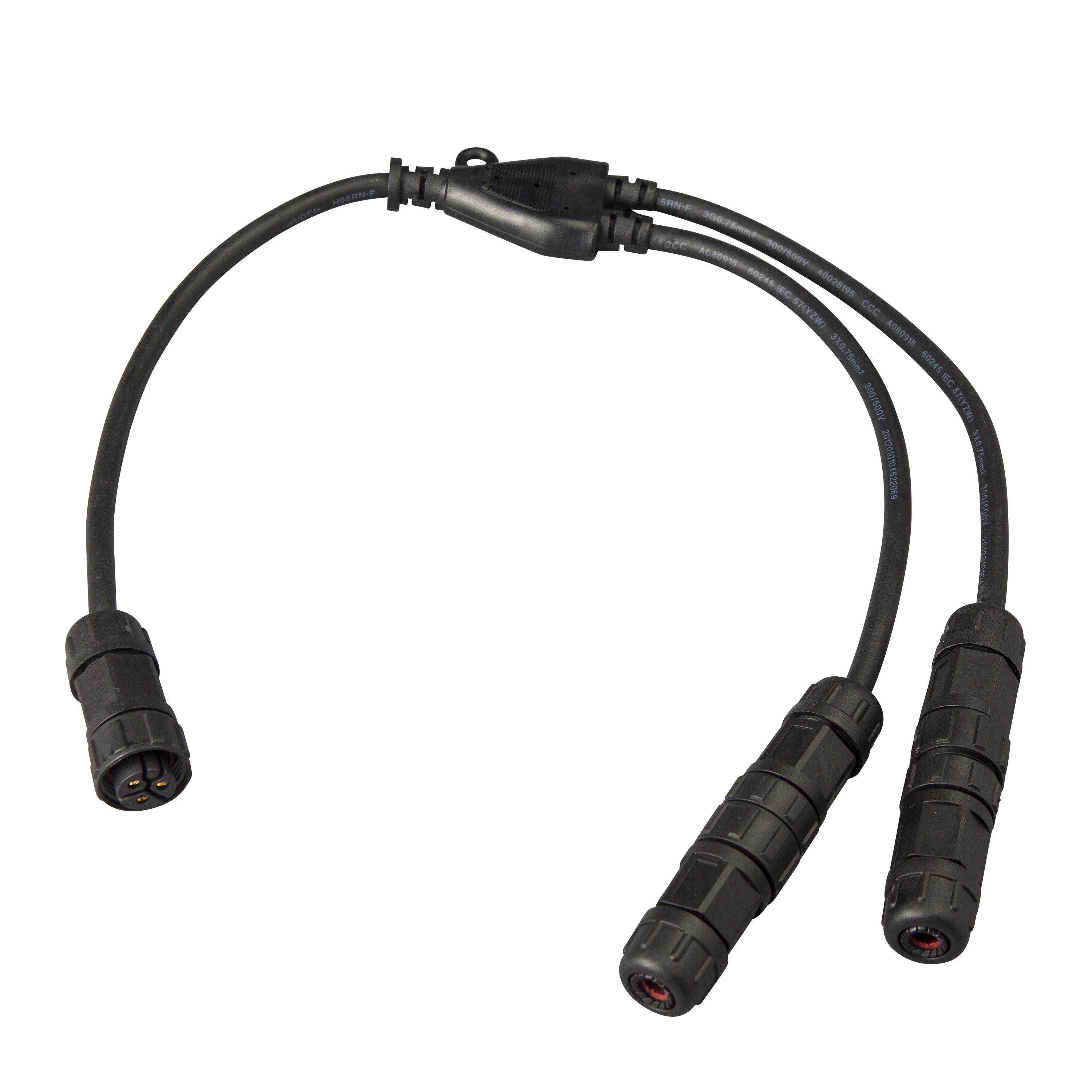 Solution PLUG & PLAY : Connectique Y 4 pôles IP68. S'adapte sur la totalité de notre gamme extérieure équipée avec la connectique IP68 M/F.
