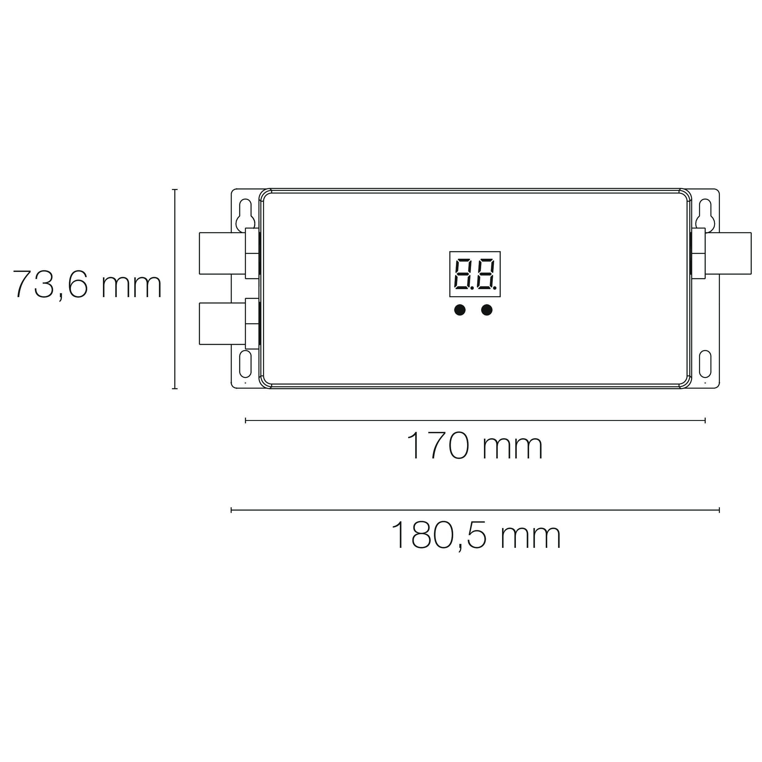 Contrôleur DALI pour produits LED monochromes : variation d'intensité lumineuse. DALI DT8 12/24 EUROPOLE 240/480/720W IP67. Nombre de zones indépendantes : 4. Nombre de canaux : 4. Tension d'entrée : 12VDC/24VDC/36VDC. Tension de sortie : 12VDC/24VDC/36VDC. Courant d'entrée : 20,5A. Courant de sortie : 5A. Classe de protection : II. , câblé des 2 côtés 0,5m, HO5RN-F 5x0,75mm². Dimmable : Oui, variation DALI. Protocole utilisé : DALI. Commande à distance : Non. Interface de communication : DALI. Transmission de signal : Filaire. Nombre d'entrée(s) primaire(s) : 1. Nombre de sorties physiques borniers : 4 (indépendantes et synchronisées selon configuration). Températures de fonctionnement : -20°C/+50°C. Adressage DALI et programmation directement sur le produit.