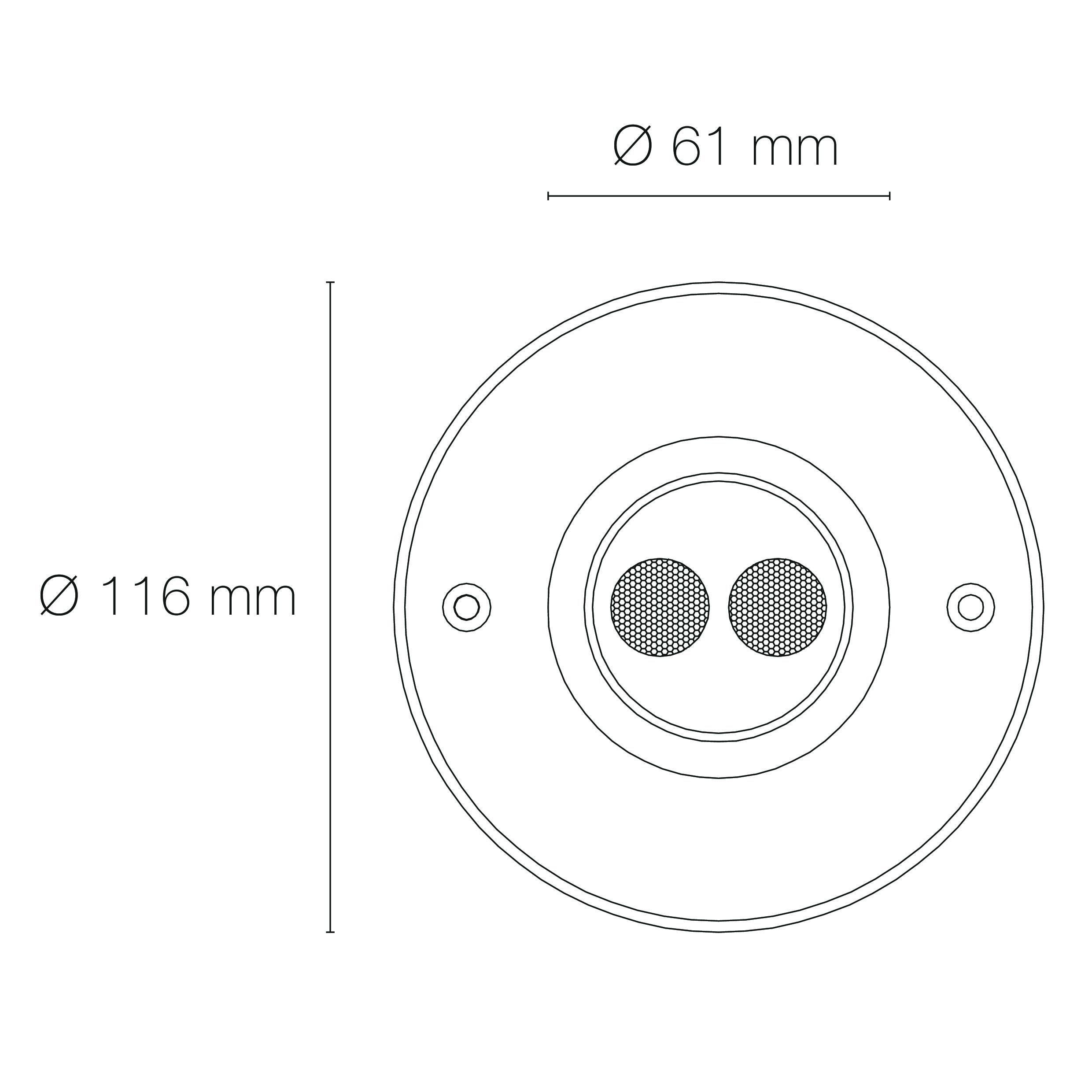 Encastré de sol DEEP LIGHT 116 orientable - 230 rond : 116mm, inox brossé, blanc 2000K, IRC>80, 2x1,5W, 170lm (56,67lm/W), verre transparent/nid d'abeille basse luminance 30° (éclairage), 230VAC. Classe I, IP67. IK09. Non dimmable.