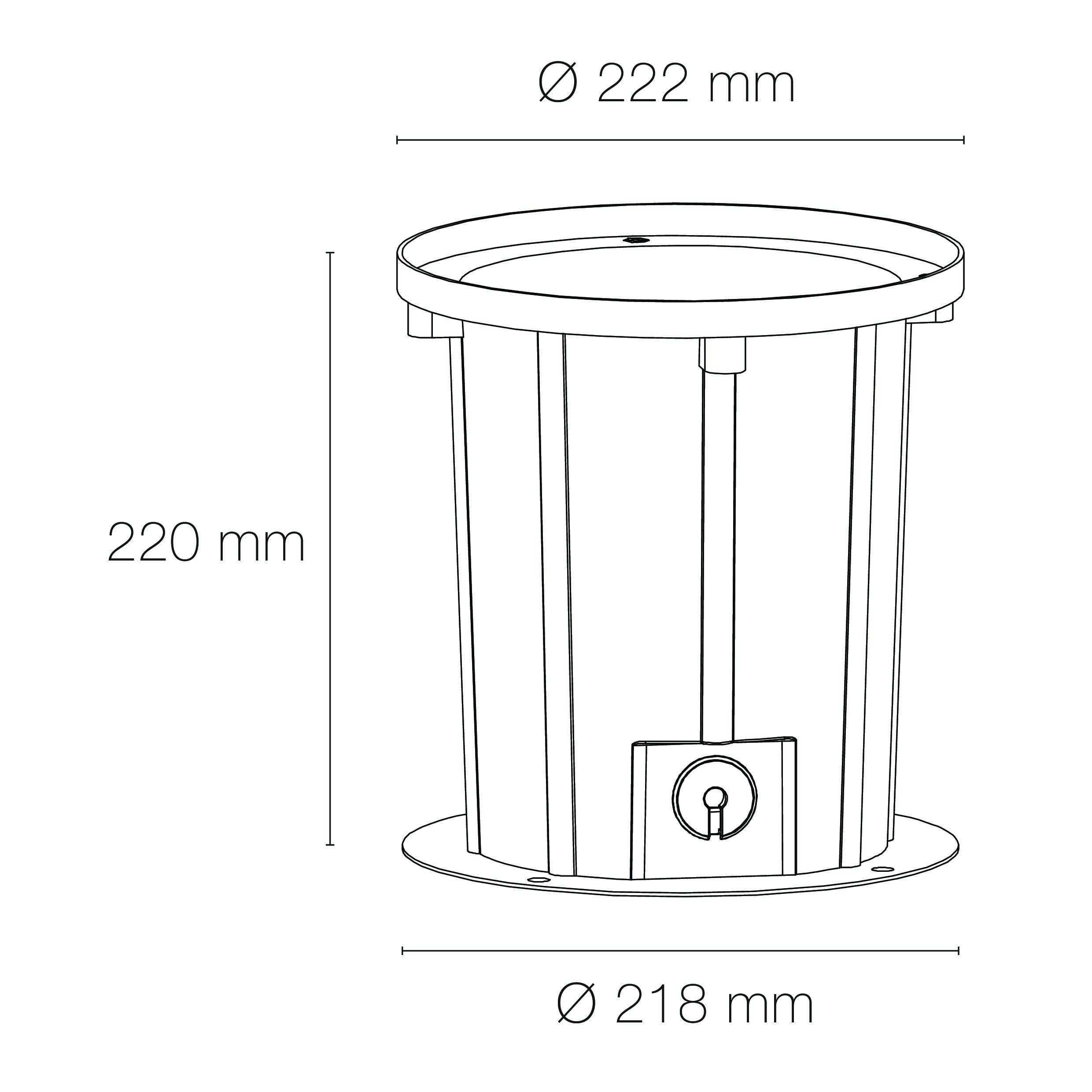 Encastré de sol EUROPOLE DEEP LIGHT 250 fixe - 230 rond inox brossé, blanc 4000K, IRC>80, 25x1W, 2401lm (96,04lm/W), verre transparent/nid d'abeille basse luminance 30° (éclairage), 230VAC. Classe de protection I, IP67, IK10, câblé de 0,5m avec connectiques rapides IP68 Plug & Play mâle et femelle, HO5RN-F 3x1mm². Durée de vie : 30000h. Dimmable : Non. Dimension collerette : diamètre 250mm. Diamètre d'encastrement : 219mm. Matériau : corps en aluminium/collerette en inox 316L. Traitement de la surface : corps traité anticorrosion. Résistance environnement : garantie corrosion 15 ans. Températures de fonctionnement : -20°C/+40°C. Walkover : Oui. Driveover : 1500Kg avec pot d'encastrement. Submersible : Non. Diamètre de découpe indiqué pour installation sans pot d'encastrement.