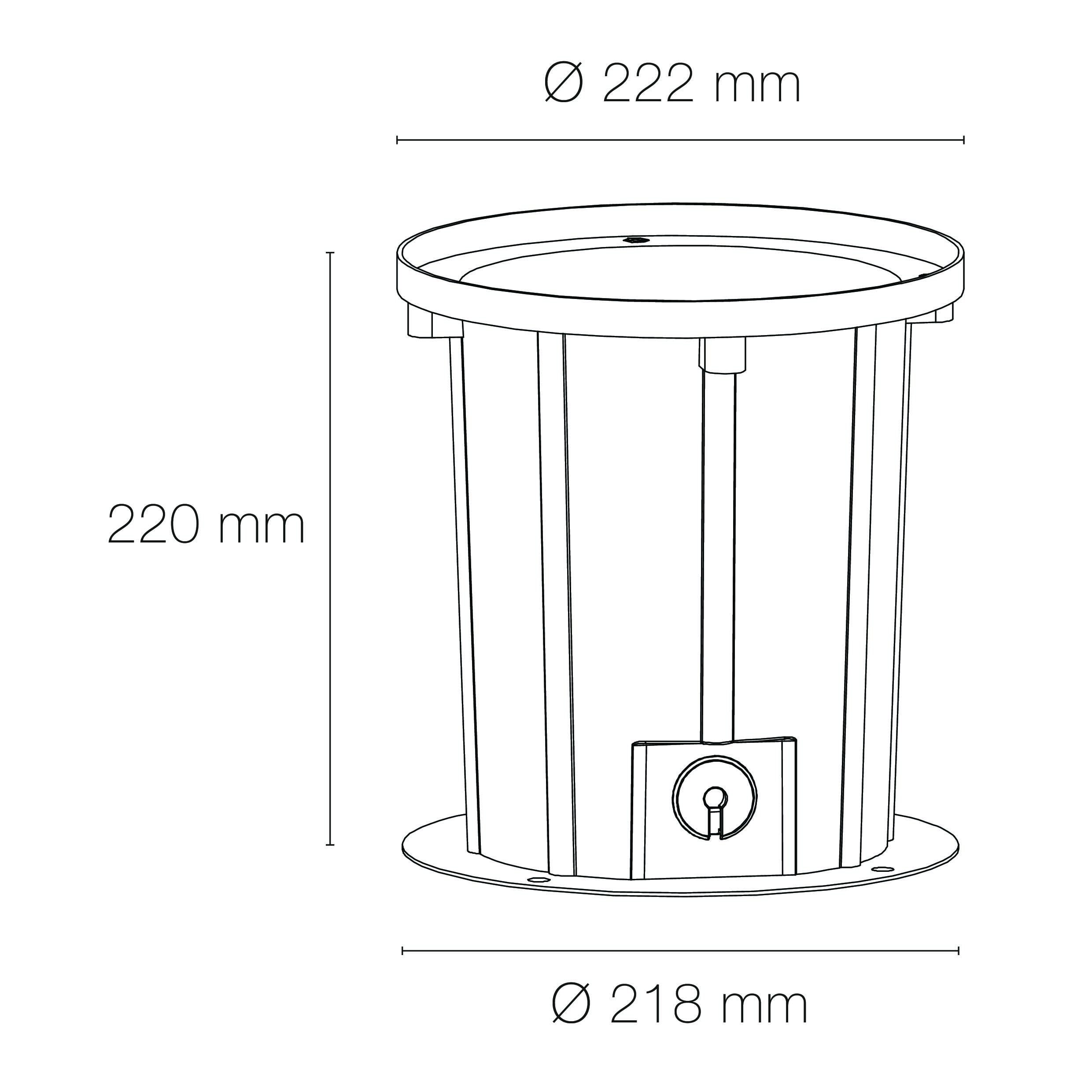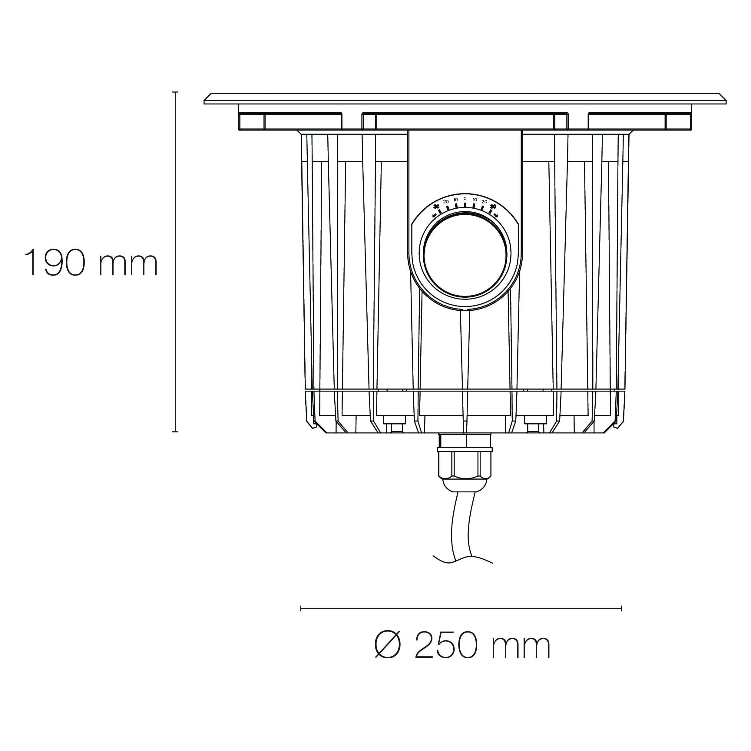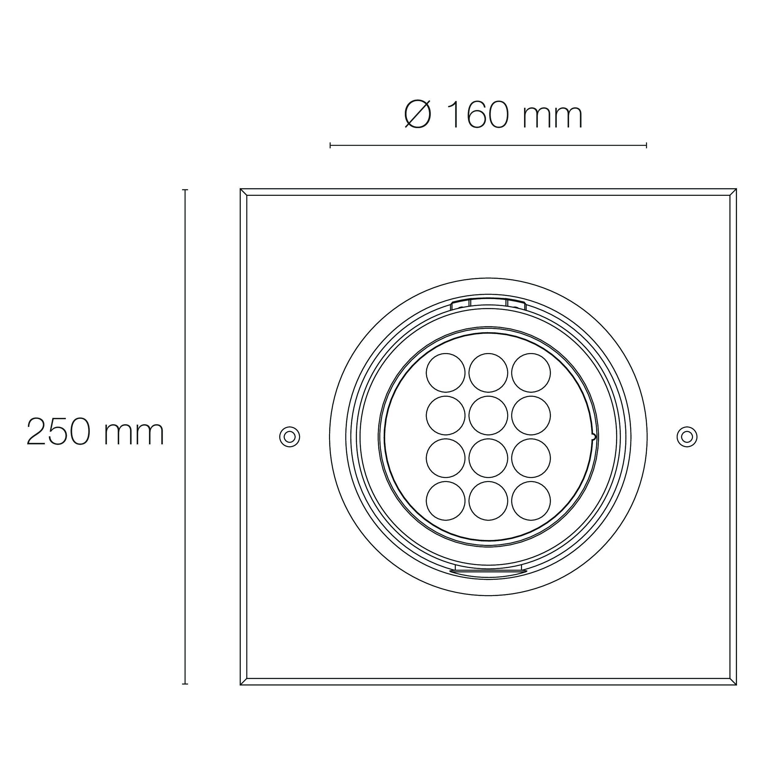 Encastré de sol EUROPOLE DEEP LIGHT 250 orientable - 24 carré inox brossé, RGBW 18W, verre transparent/nid d'abeille basse luminance 30° (éclairage), 24VDC. Optique orientable +/- 20° réglable sur le produit. Classe de protection III, IP67, IK09, câblé de 0,5m avec connectiques rapides IP68 Plug & Play mâle et femelle, HO5RN-F 5x0,5mm². Durée de vie : 30000h. Dimmable : Oui, variation avec alimentation/contrôleur compatible (non inclus). Dimension collerette : 250x250mm. Diamètre d'encastrement : 219mm. Matériau : corps en aluminium/collerette en inox 316L. Traitement de la surface : corps traité anticorrosion. Résistance environnement : garantie corrosion 15 ans. Températures de fonctionnement : -20°C/+40°C. Walkover : Oui. Driveover : 1500Kg avec pot d'encastrement. Submersible : Non. Diamètre de découpe indiqué pour installation sans pot d'encastrement.