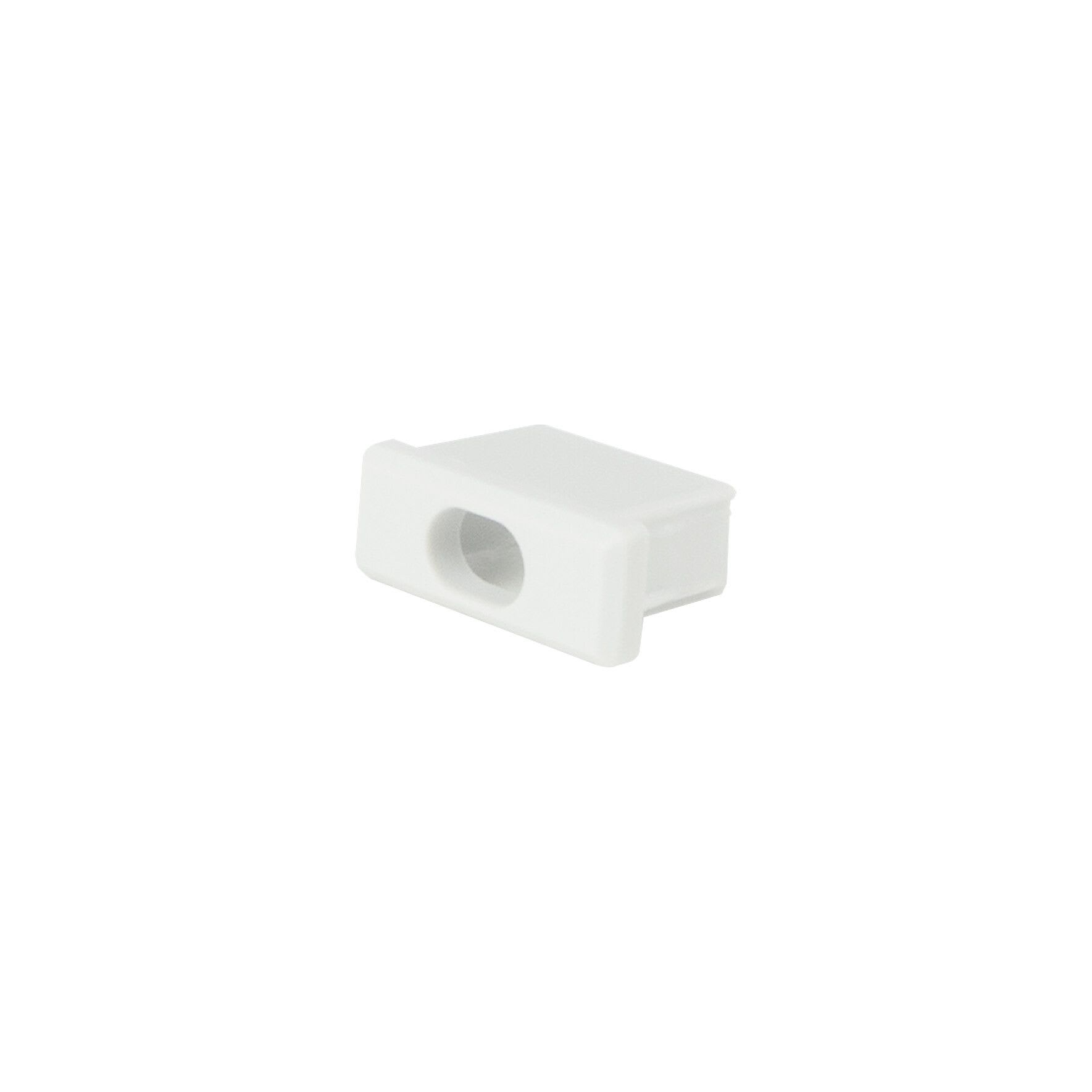 Embout avec passage de câble pour profil : MICRO-ALU, blanc. Finition de la surface : mat, matériau : plastique. Vendu à l'unité.