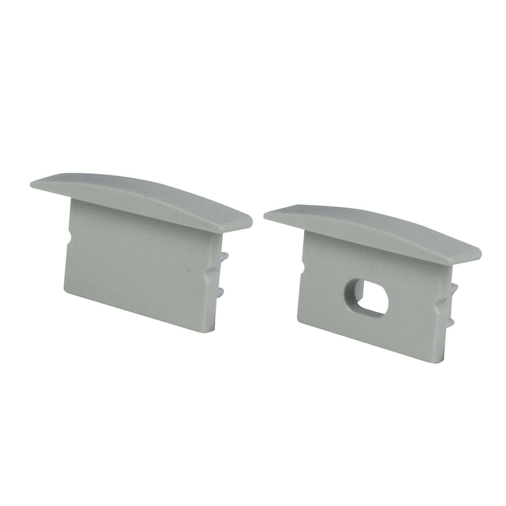 Embouts avec et sans passage de câble pour pack profils : PLAKO R EVO, gris. Finition de la surface : mat, matériau : plastique. Vendu en sachet de 10 pièces. Le sachet comprend 5 embouts pleins et 5 embouts avec passage de câble.